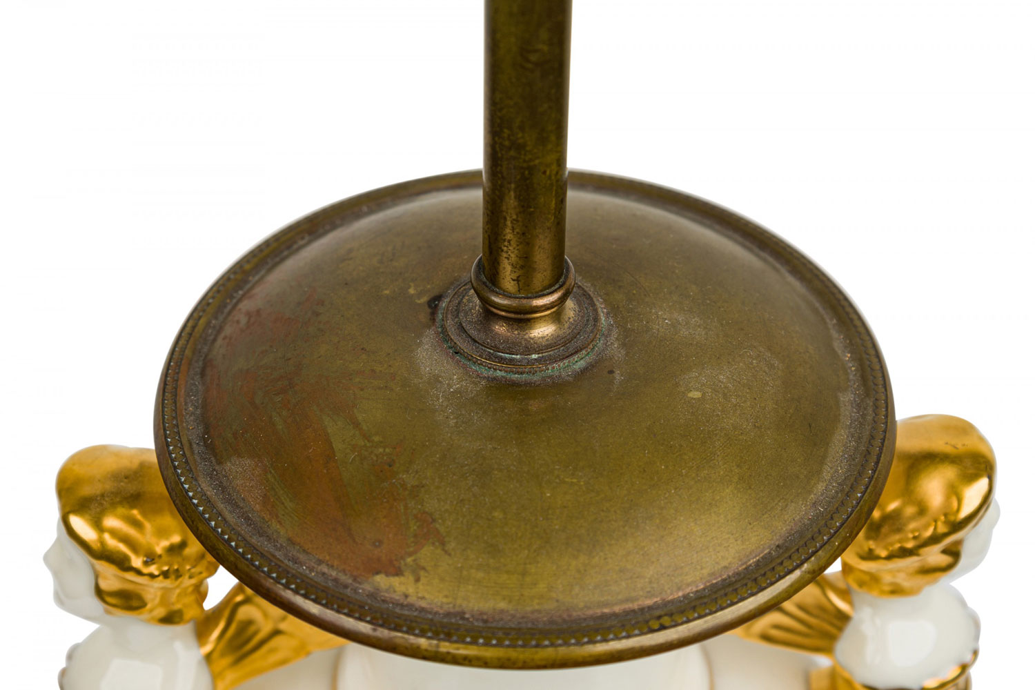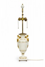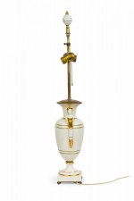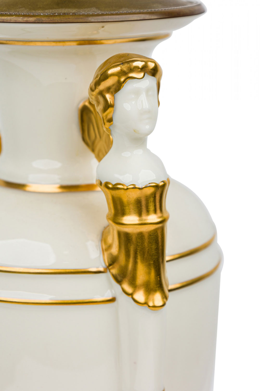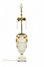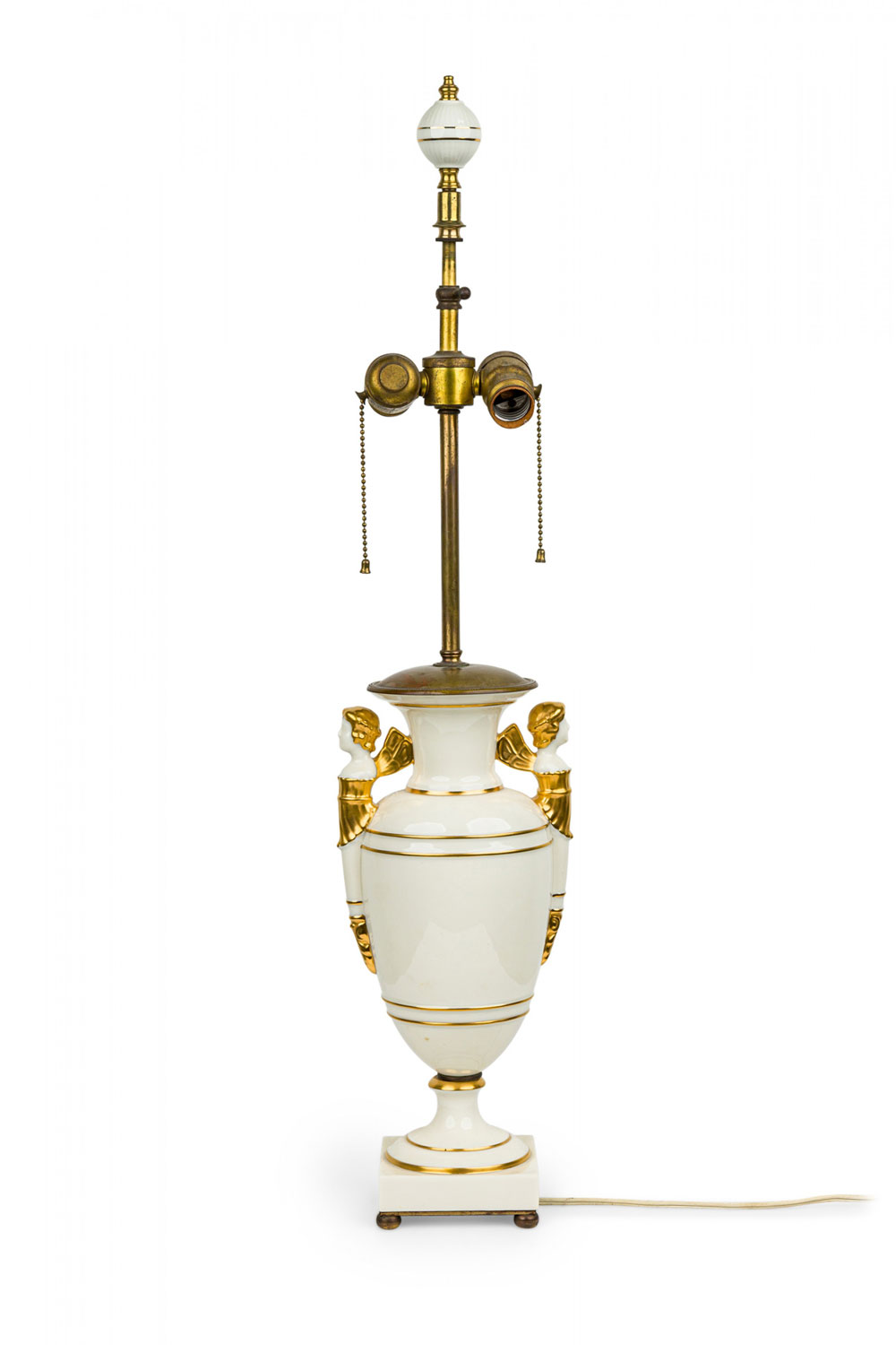 French Charles X style White and Gilt Ceramic and Brass Urn Form Table Lamp