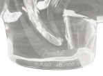 French Mid-Century (1980/90s) limited edition (40/100) of a crystal sculpture of a small peacock figure with spread feathers (signed BACCARAT, designed by B AUGST).