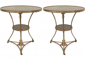 Style: French Materials & Techniques: Bronze, bronze dore, marble, metal Category: Tables Condition: Minor cracked marble on one table