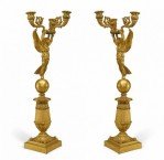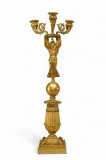 Pair of French Empire Bronze Dore Candelabras with Winged Figures