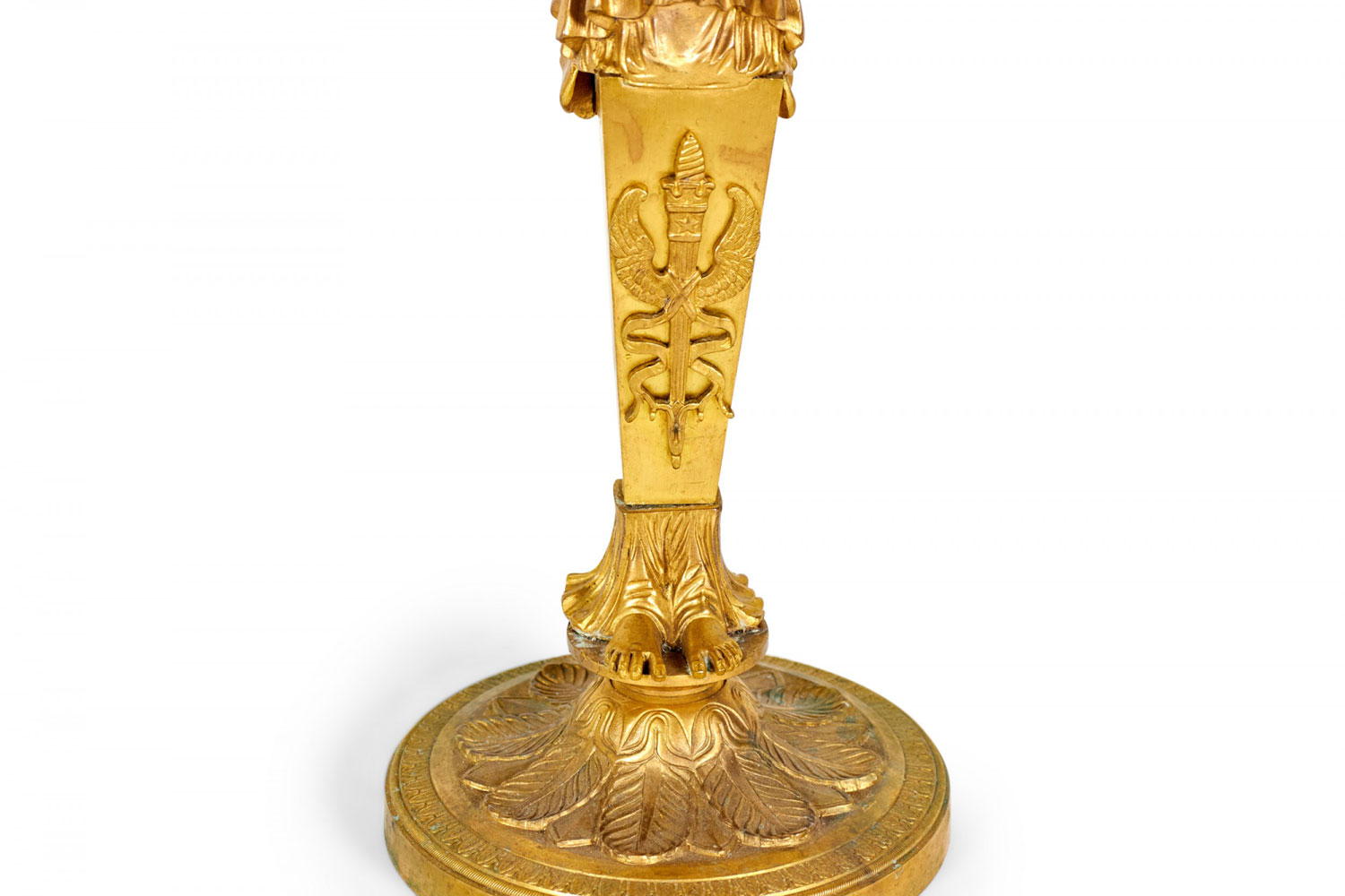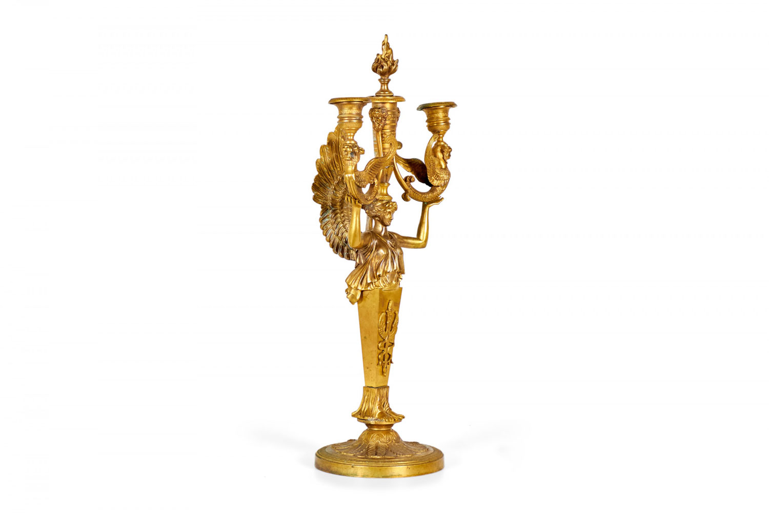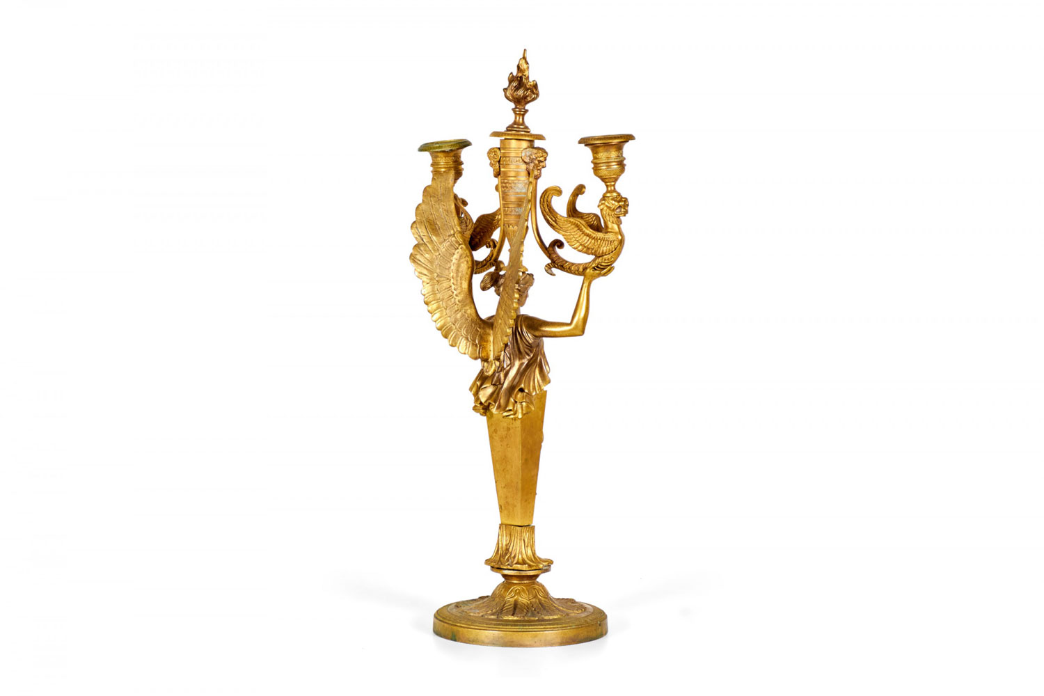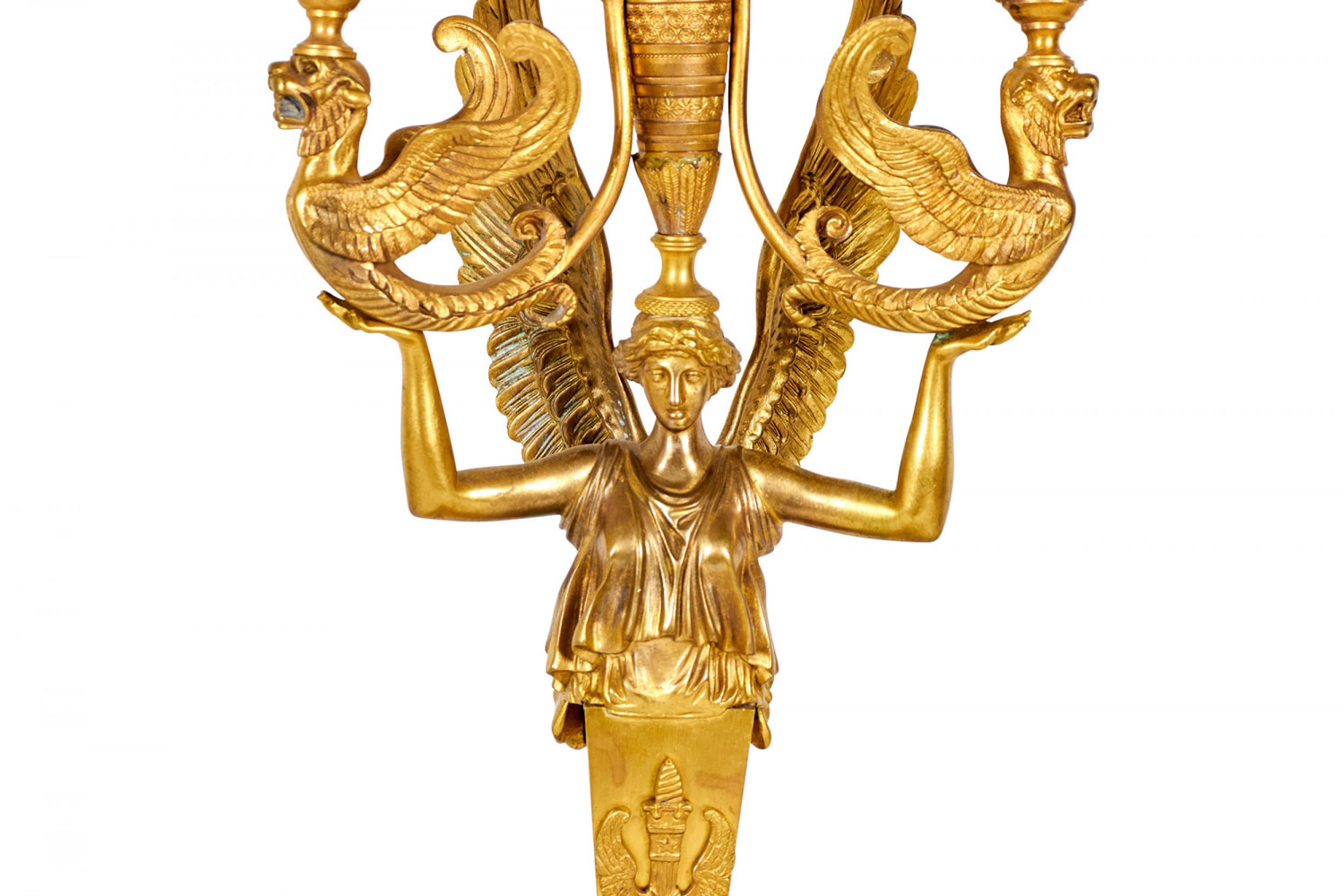 Pair of French Empire Bronze Dore Figural Candelabras With Griffins