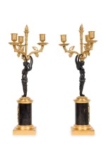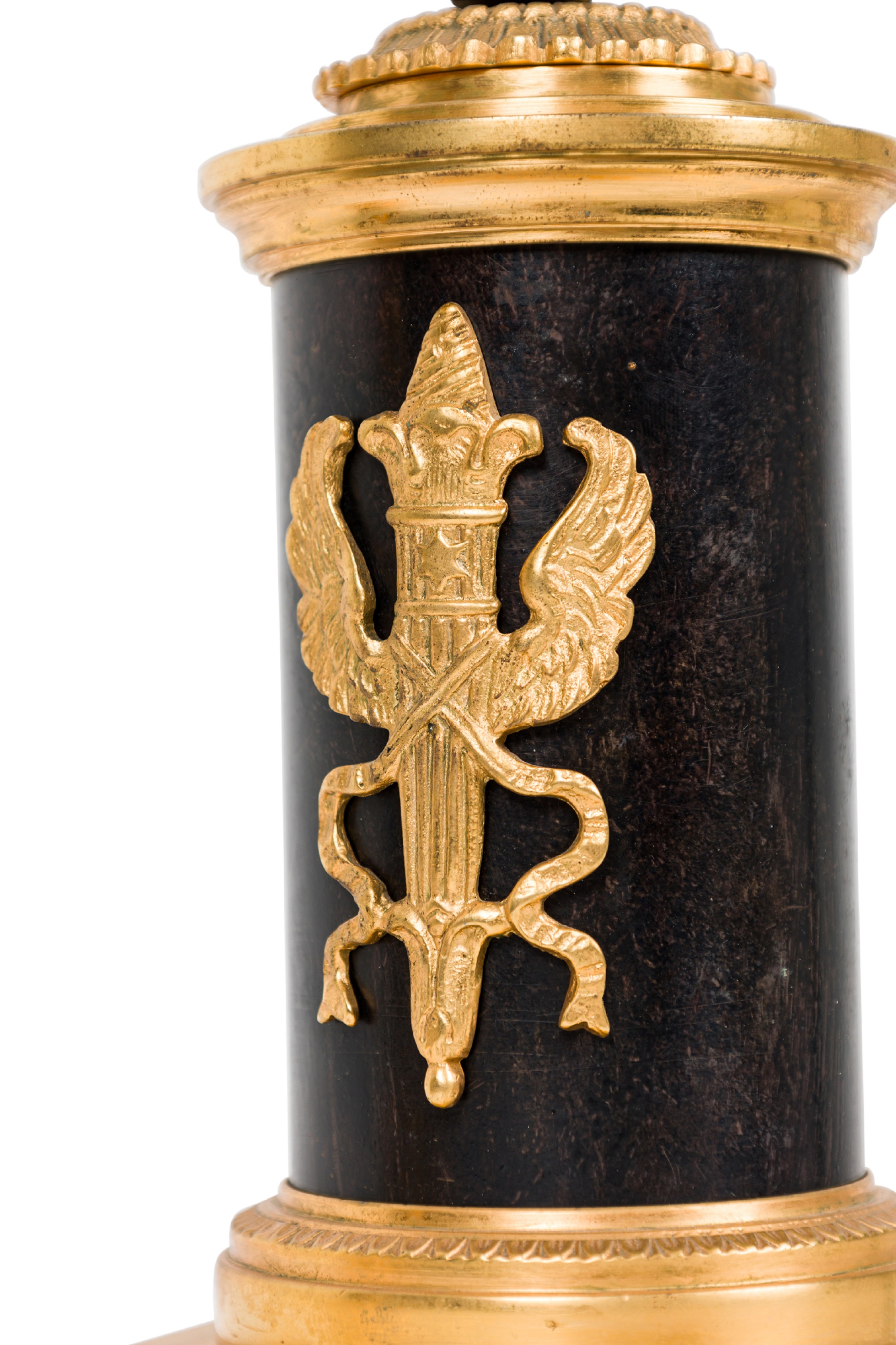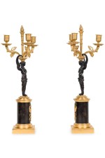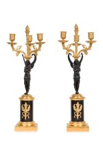 Pair of French Empire Gilt Bronze and Ormalu Candelabras