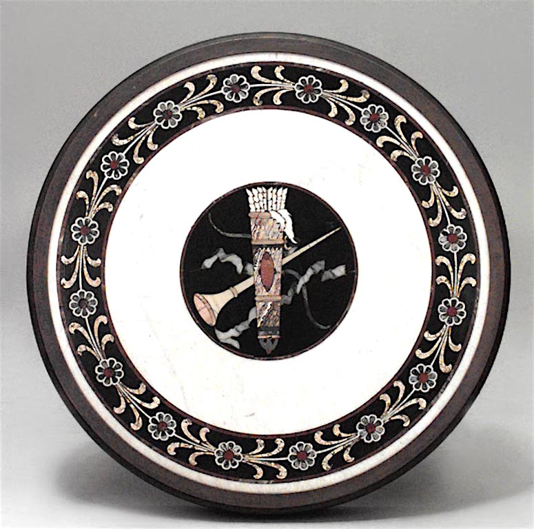 Style: French Materials & Techniques: Bronze, inlaid, marble Category: Tables Good; Wear consistent with age and use