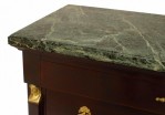French Empire style (20th Century) mahogany chest with 4 drawers and green marble top with gilt bronze handles and trim