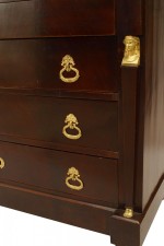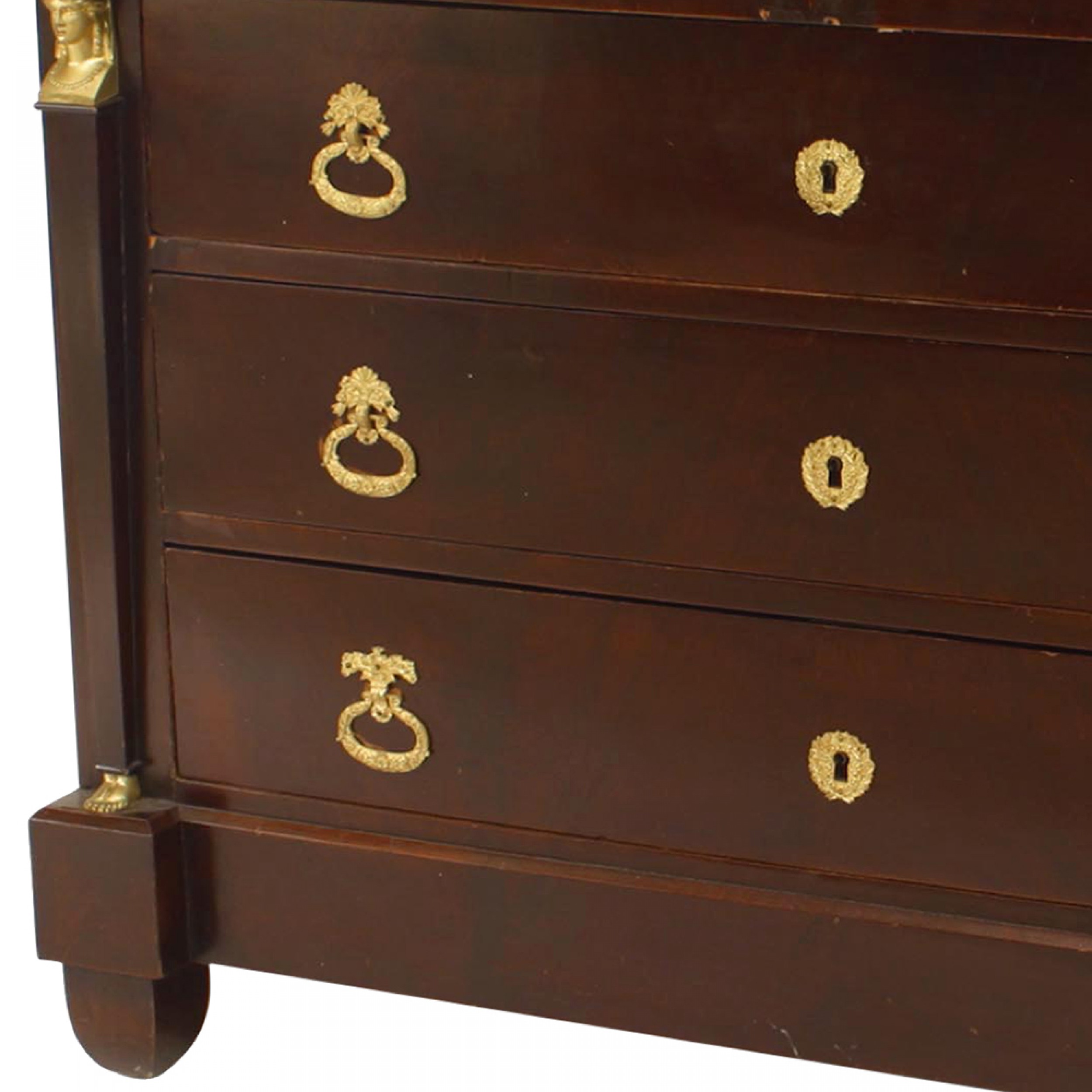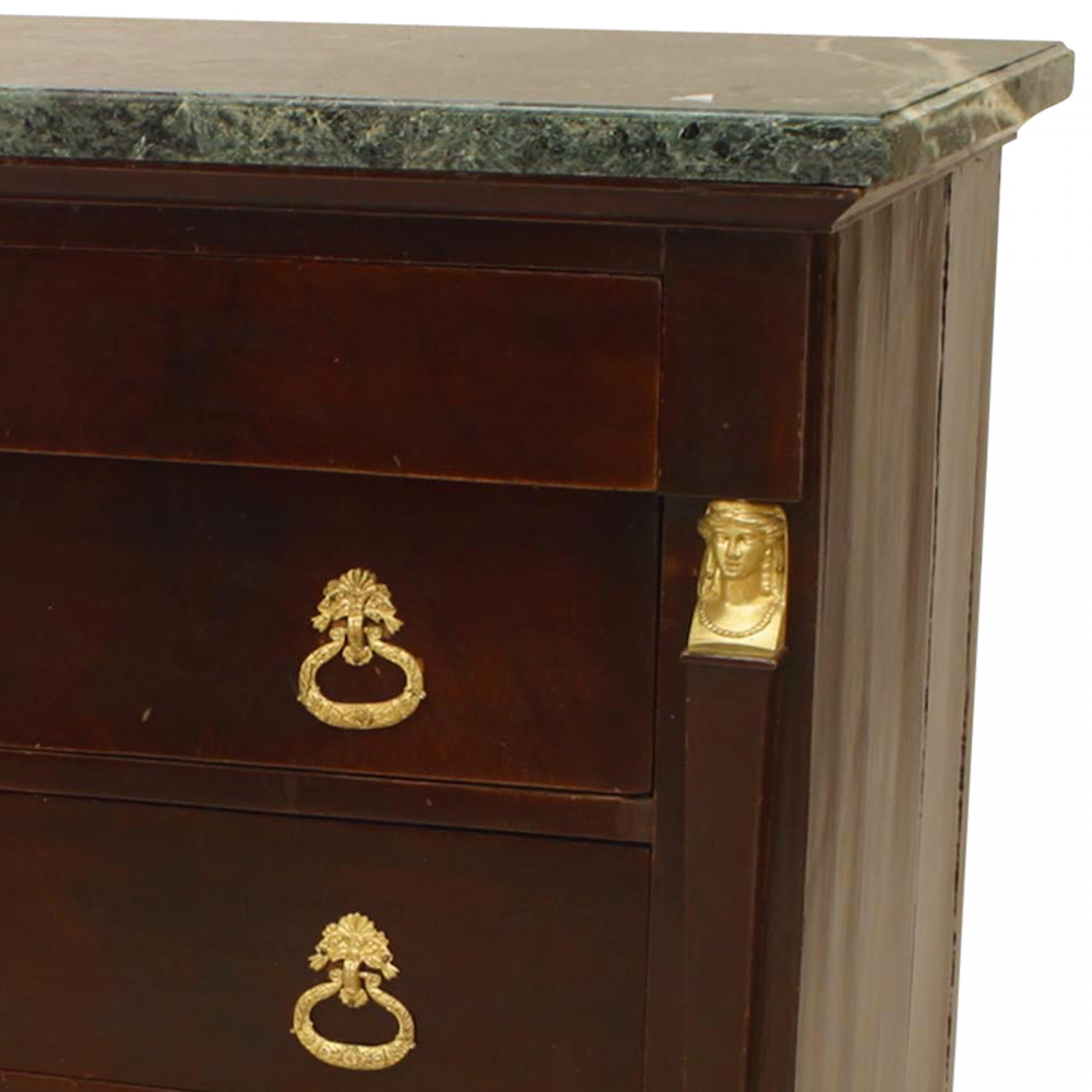 French Empire style (20th Century) mahogany chest with 4 drawers and green marble top with gilt bronze handles and trim.