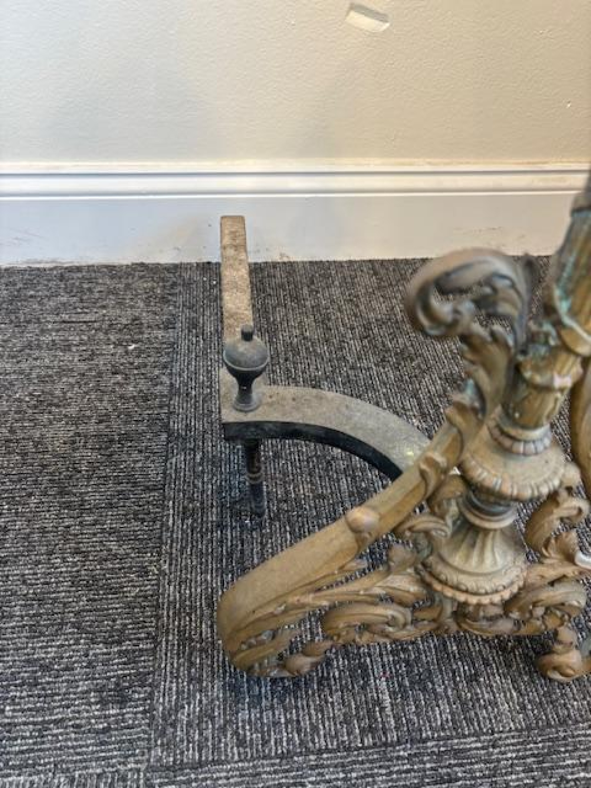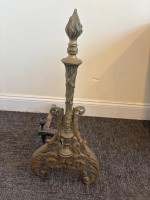 French Louis XV style bronze torch form andirons