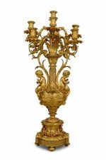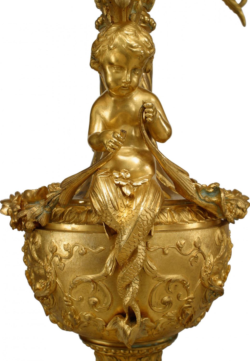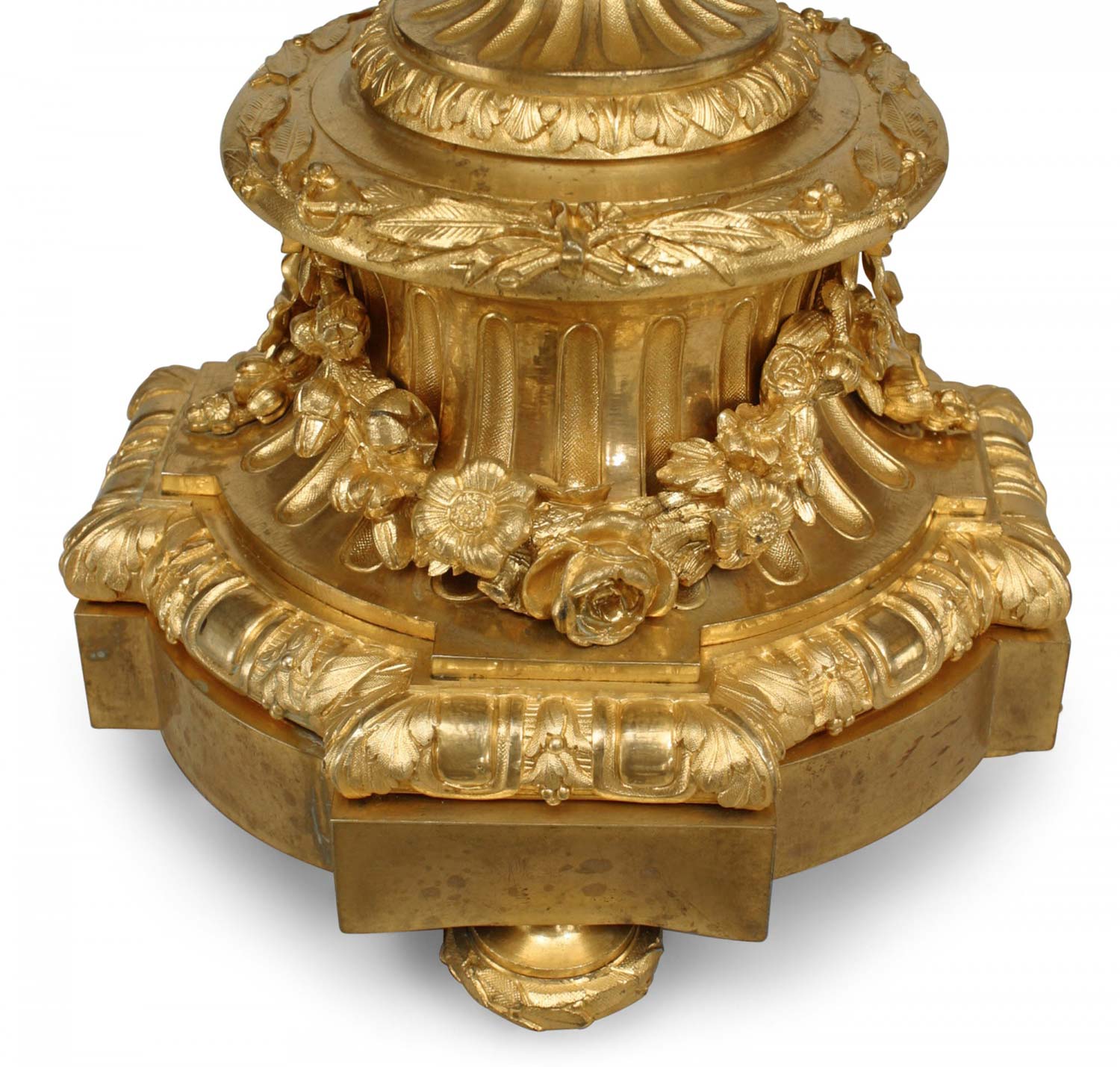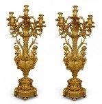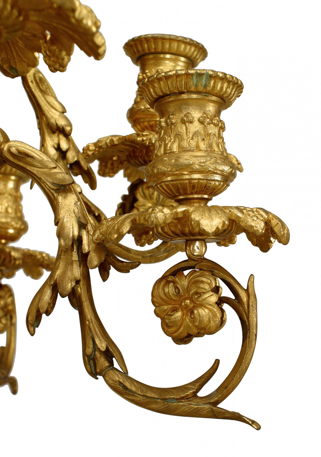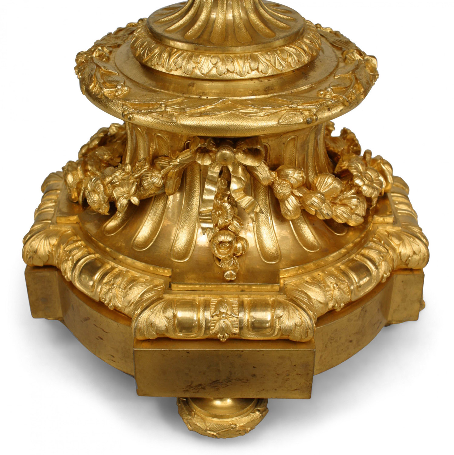 Pair of French Louis XV Bronze Dore Urn Candelabras