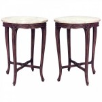 Pair of French Louis XV Small Walnut and Marble End Tables