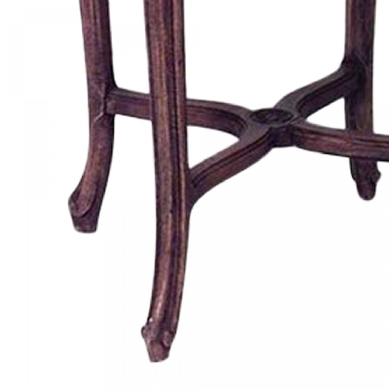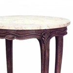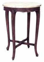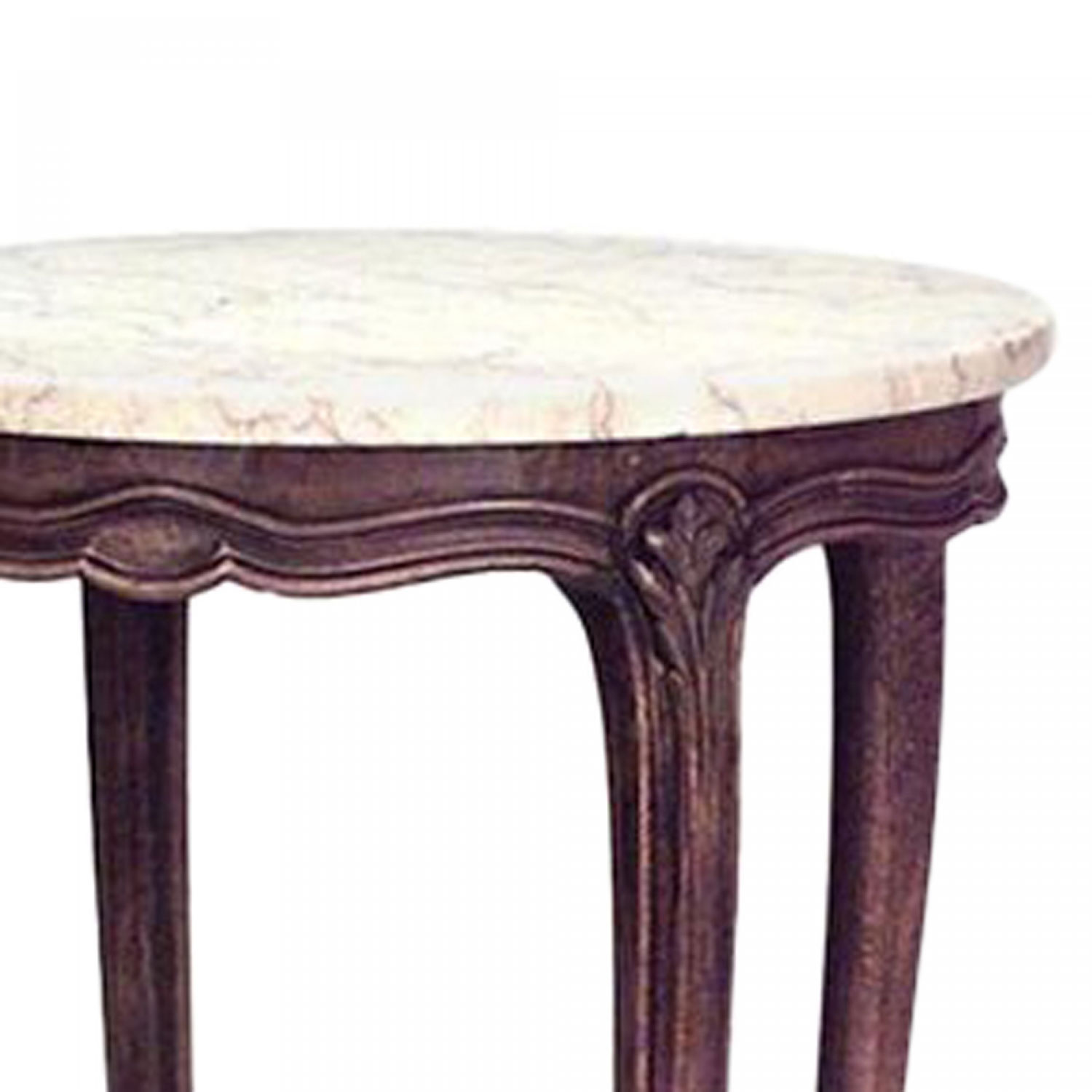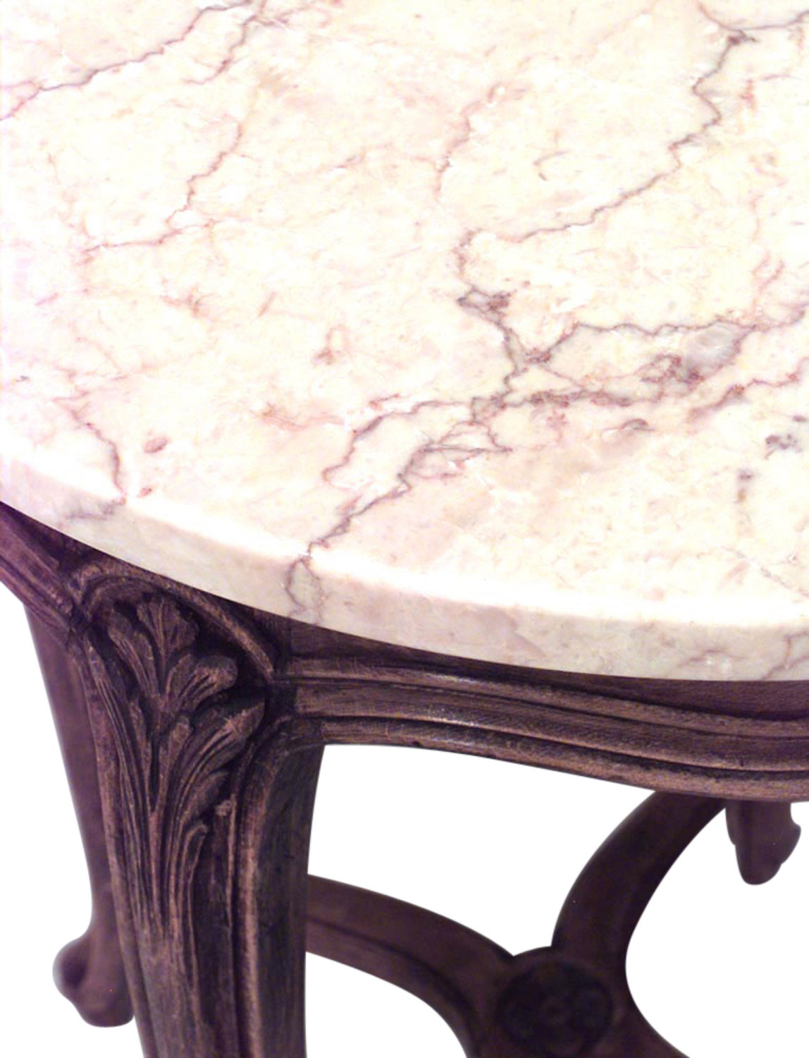 Style: French Materials & Techniques: Marble, walnut Category: Tables Condition: One of the end table has small chips along the edge of the marble.