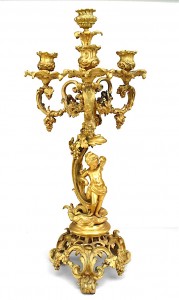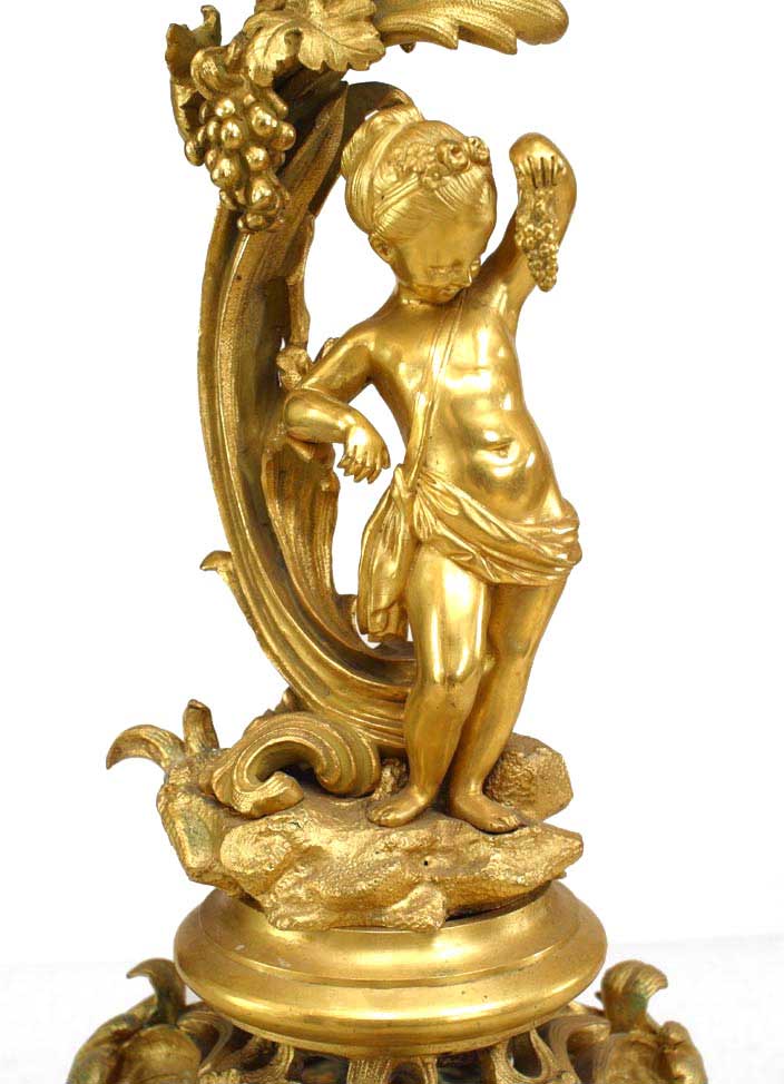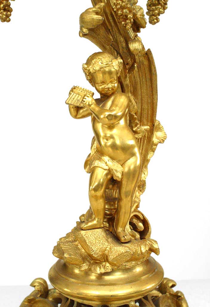 Pair of French Louis XV Style Bronze Dore Four Arm Cupid Candelabras