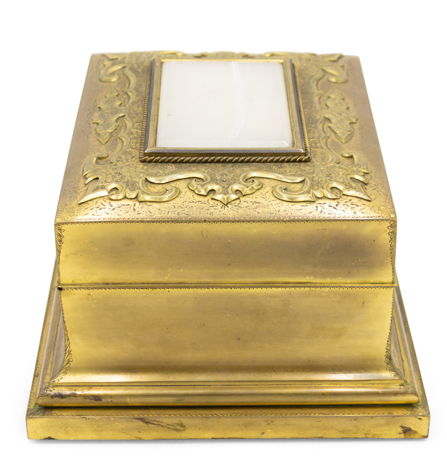 French Louis XVI-style (19th Century) bronze dore rectangular shaped box with onyx inset top