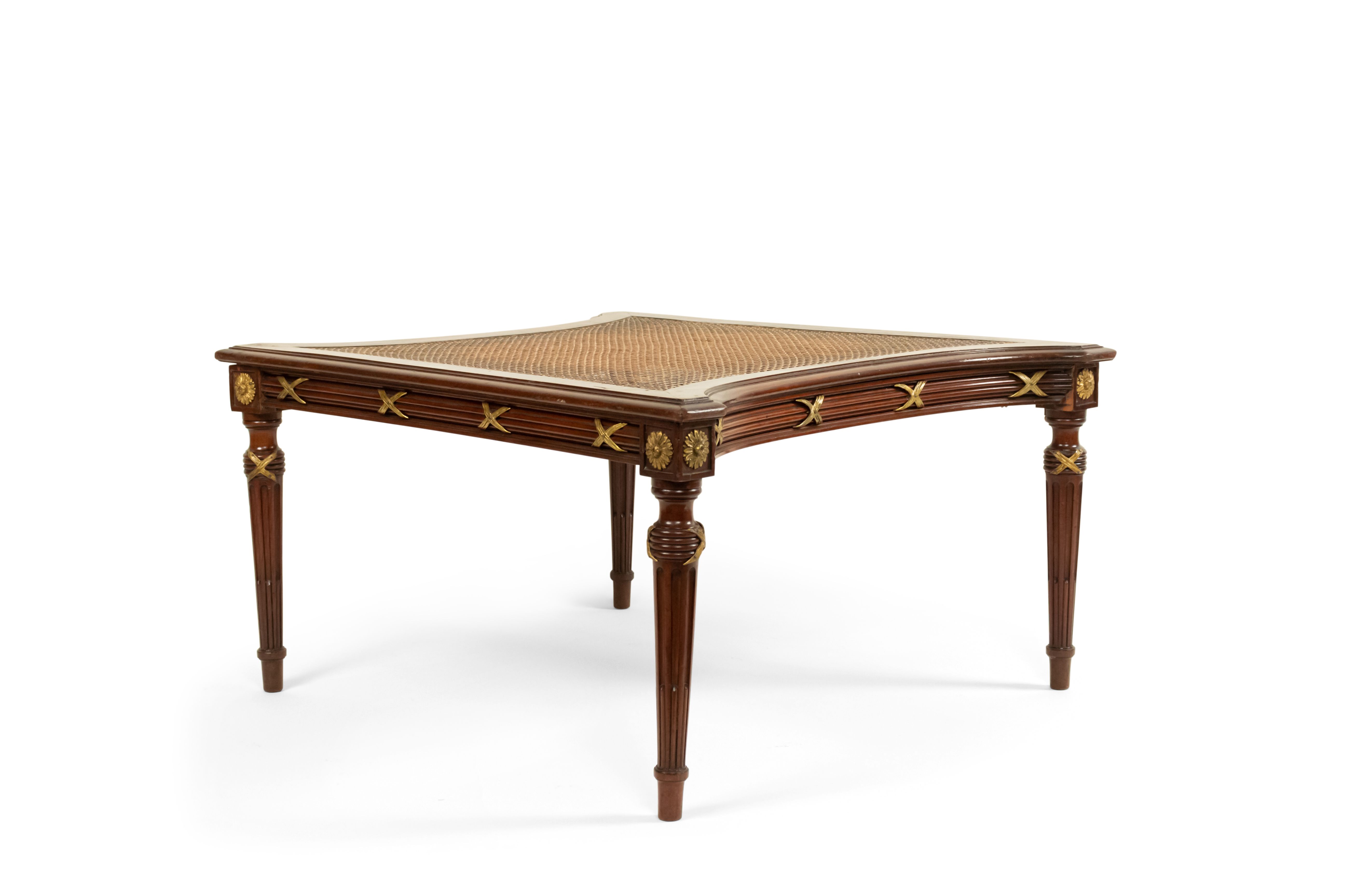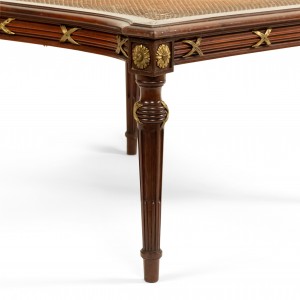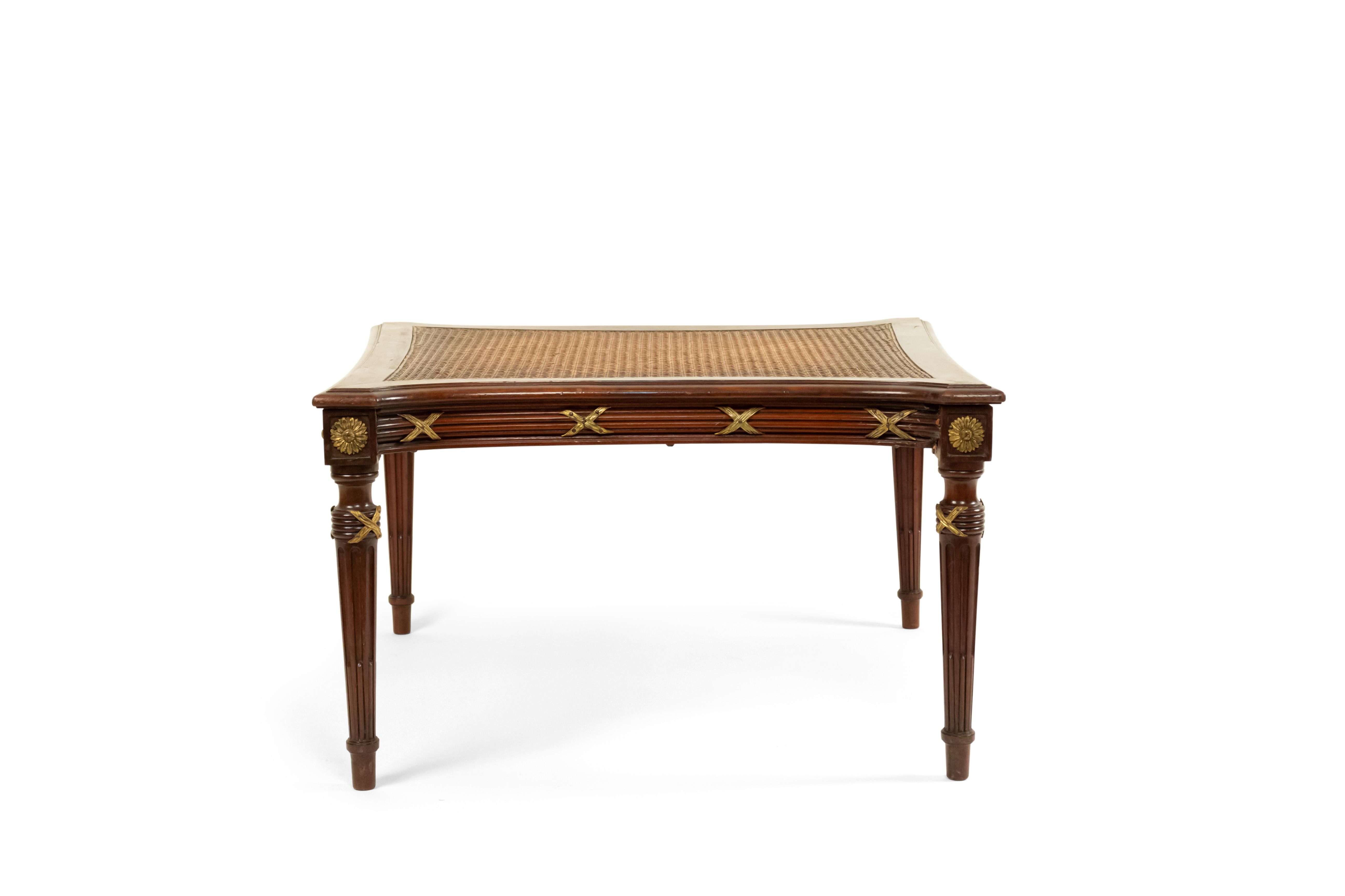 French Louis XVI style (late 19th Century) ormolu mounted mahogany caned ottoman. (Similar items: 050651, 050651A).