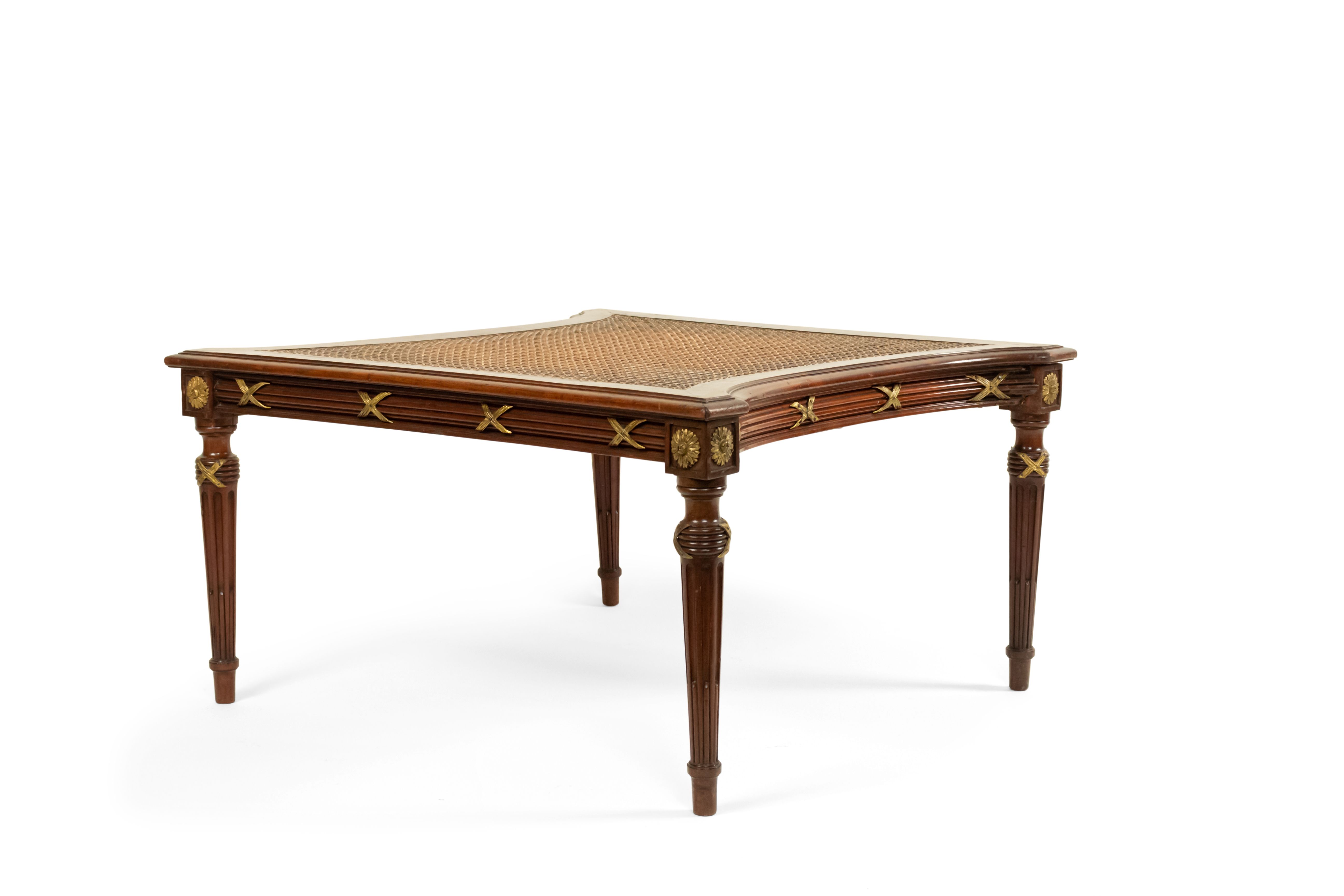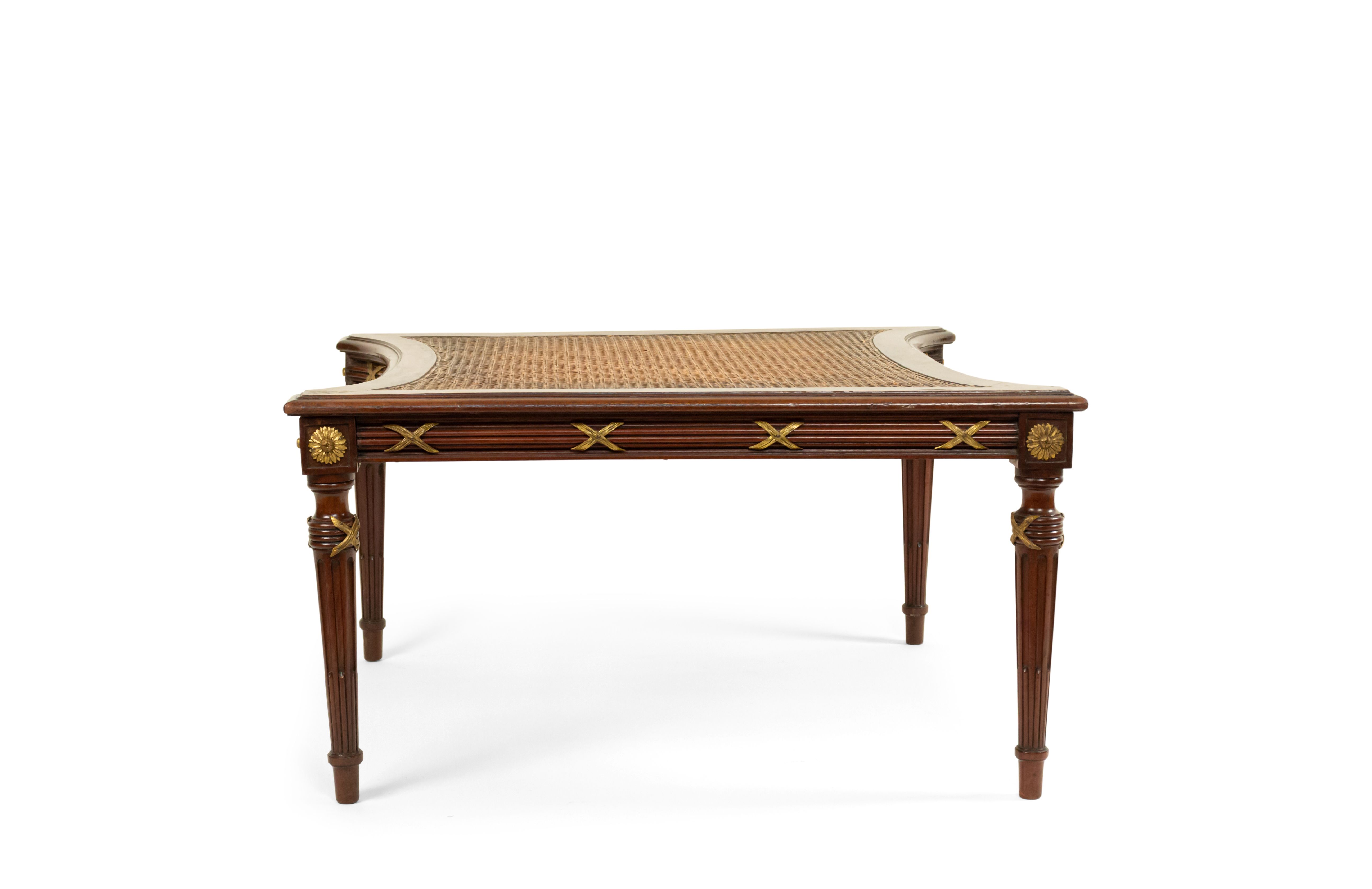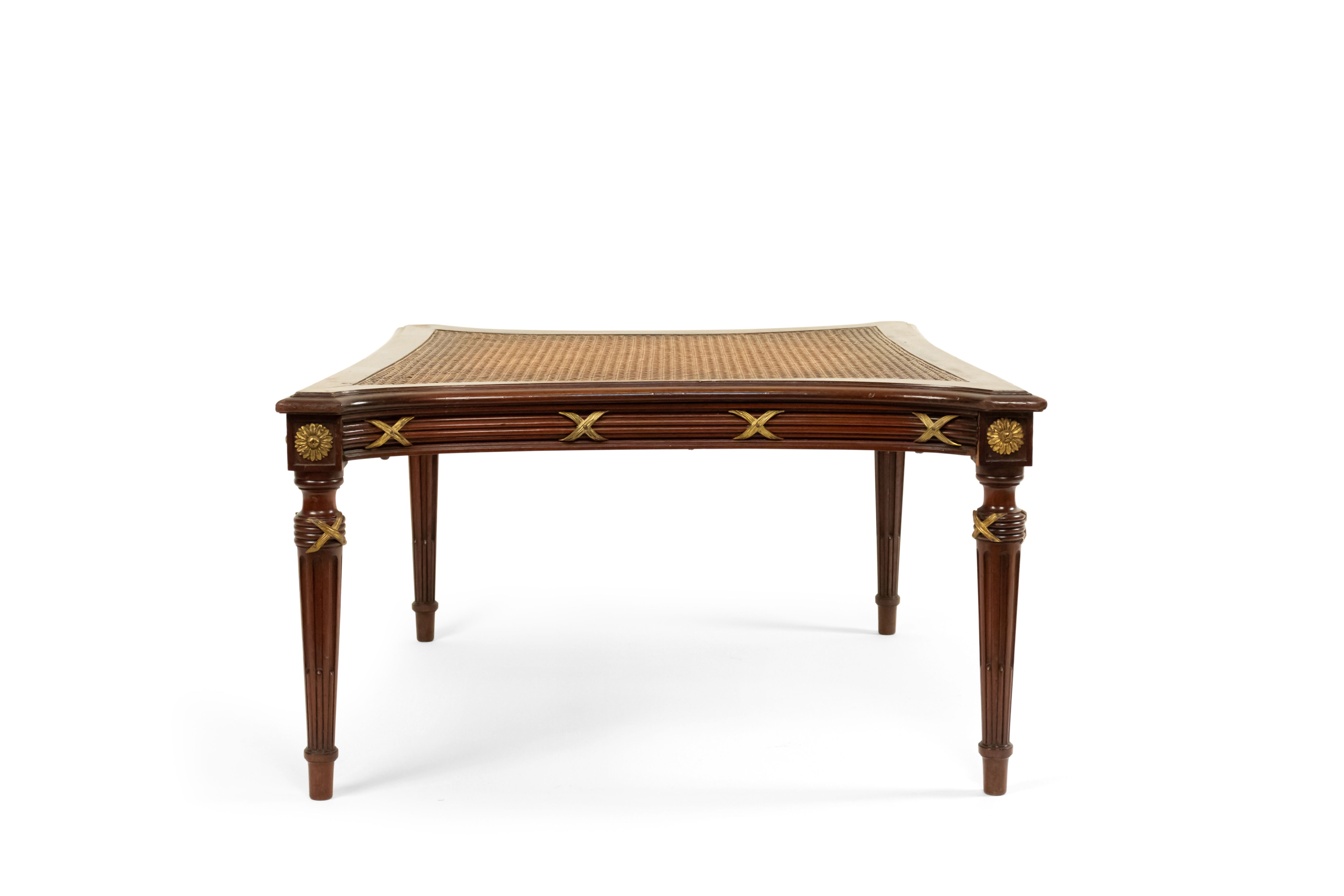 French Louis XVI style (late 19th Century) ormolu mounted mahogany caned ottoman. (Similar items: 050651, 050651A)..
