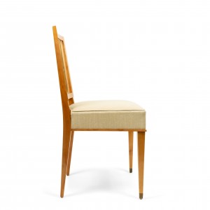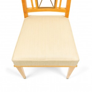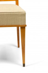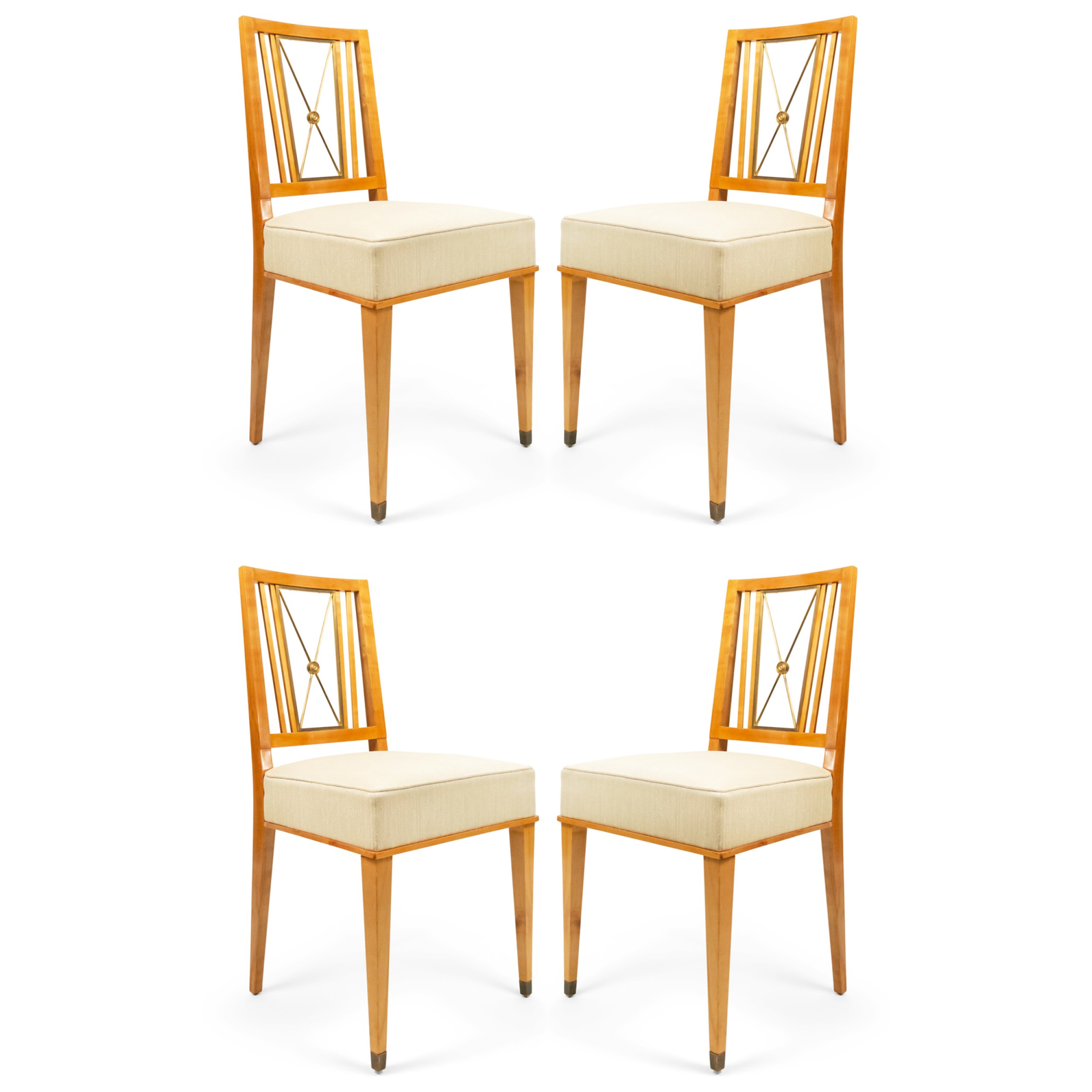Set of 4 Jacques Adnet French Mid-Century Maple and Silk Side Chairs