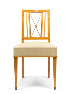 Style: Mid-Century Materials & Techniques: Brass, maple, silk Category: Seating