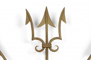French Mid-Century Brass and Crystal Trident Wall Sconce