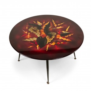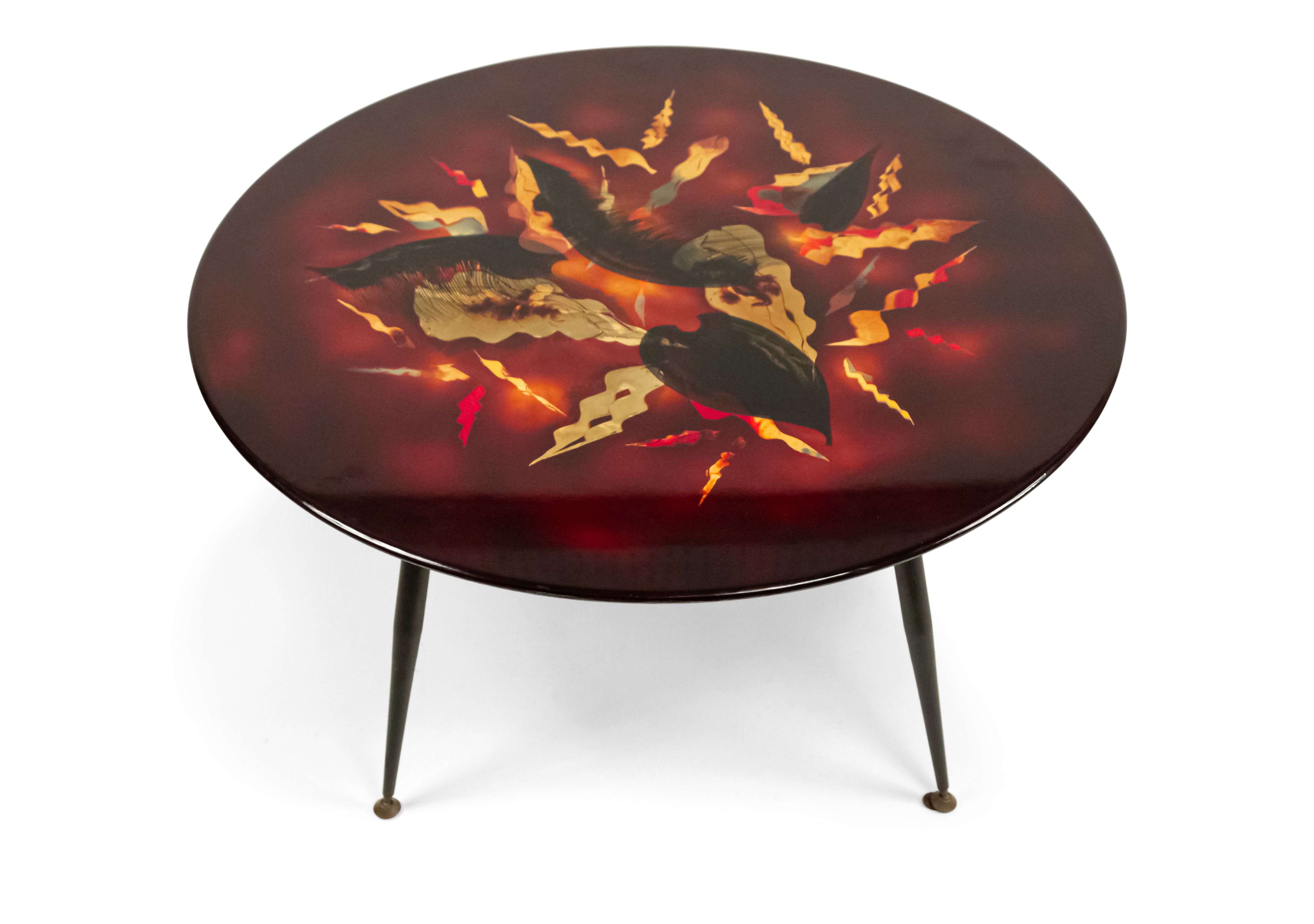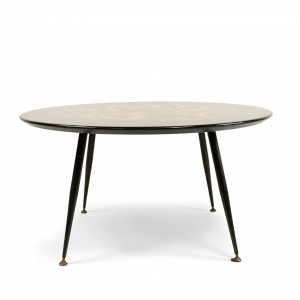 Style: Mid-Century Materials & Techniques: Metal, bronze, lacquered Category: Tables