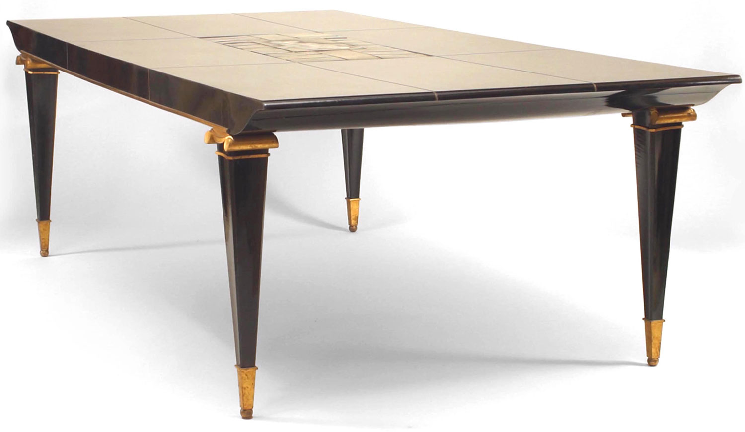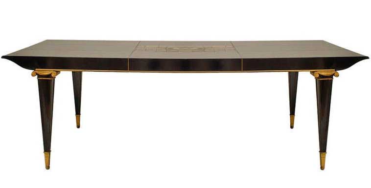 Style: Mid-Century Materials & Techniques: Ebonized, inlaid Category: Tables, Office/Library, Dining Room