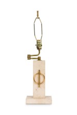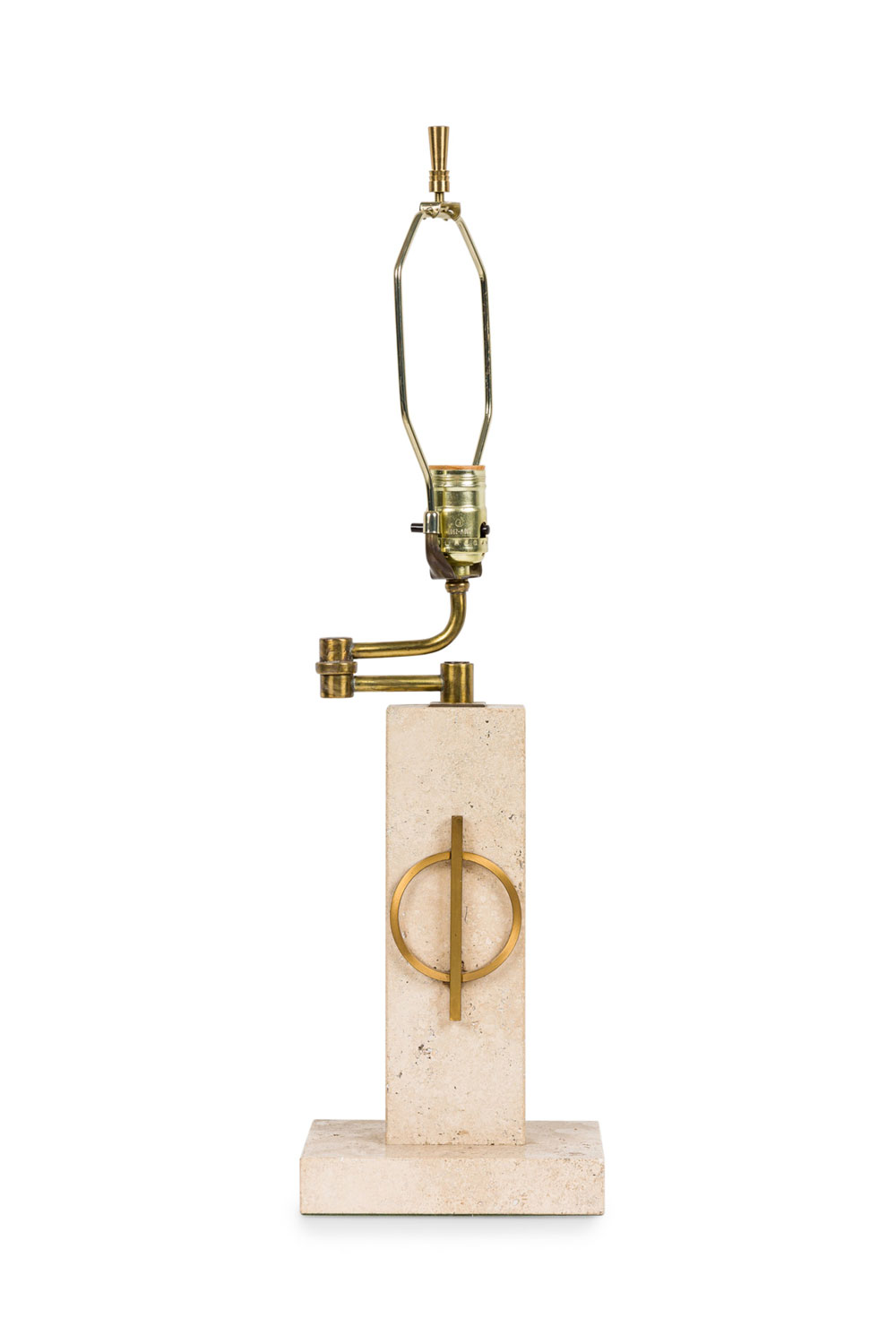 Style: Mid-Century Materials & Techniques: Bronze, marble, travertine Category: Lighting Condition: Ships without a shade