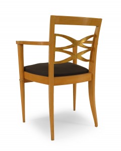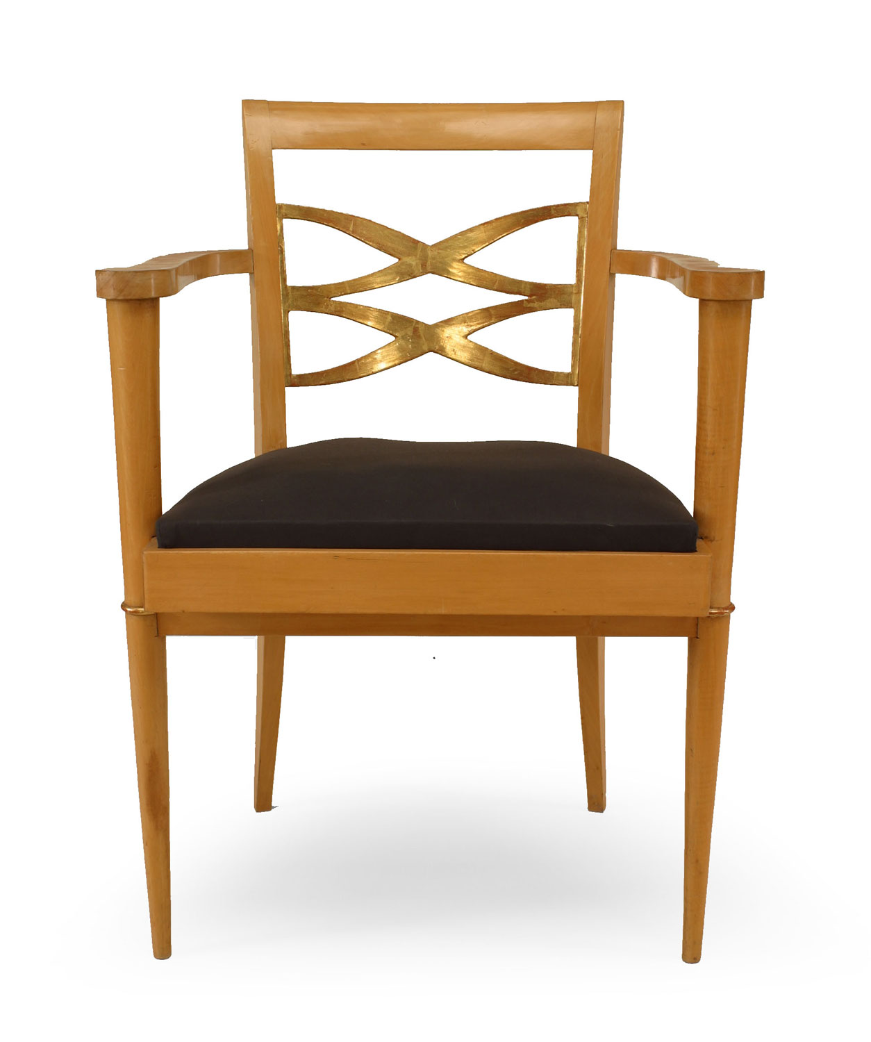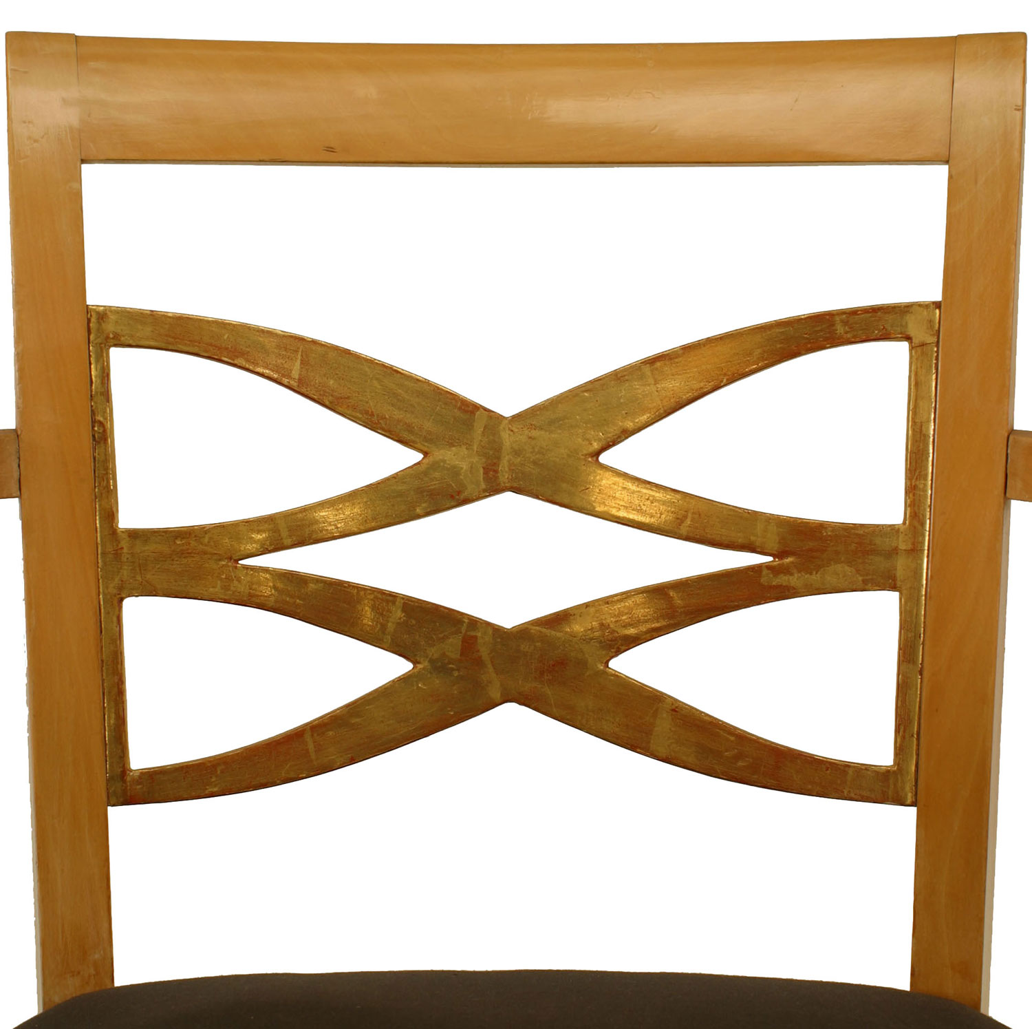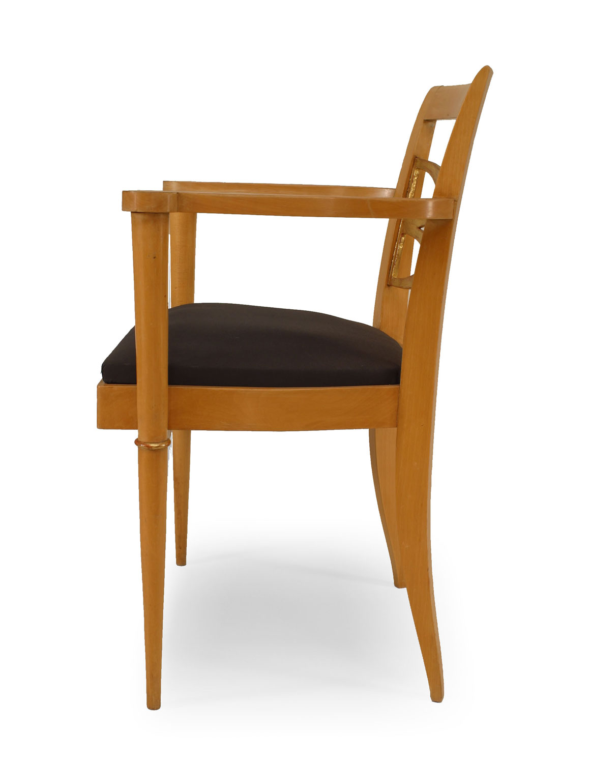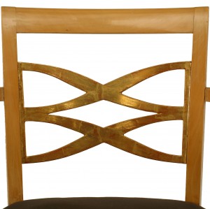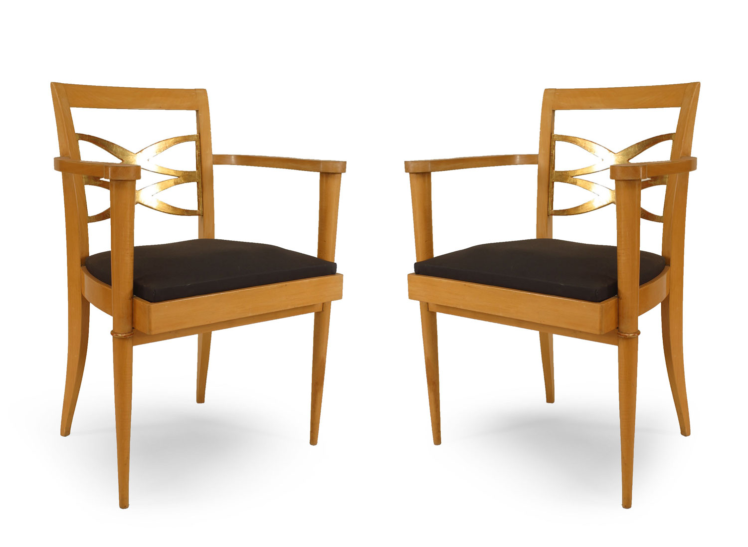 PAIR of French 1940s sycamore Armchairs with open design gilded back & trim and slip seat (att: BATISTIN SPADE) (a 3rd single chair is also available 058792A).