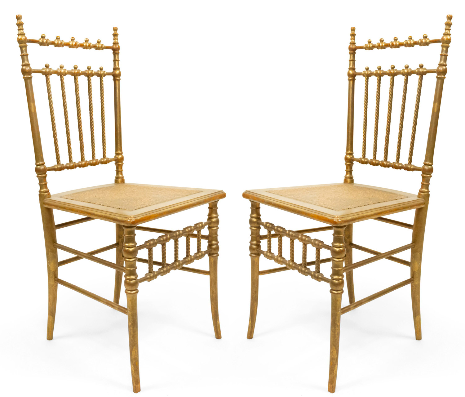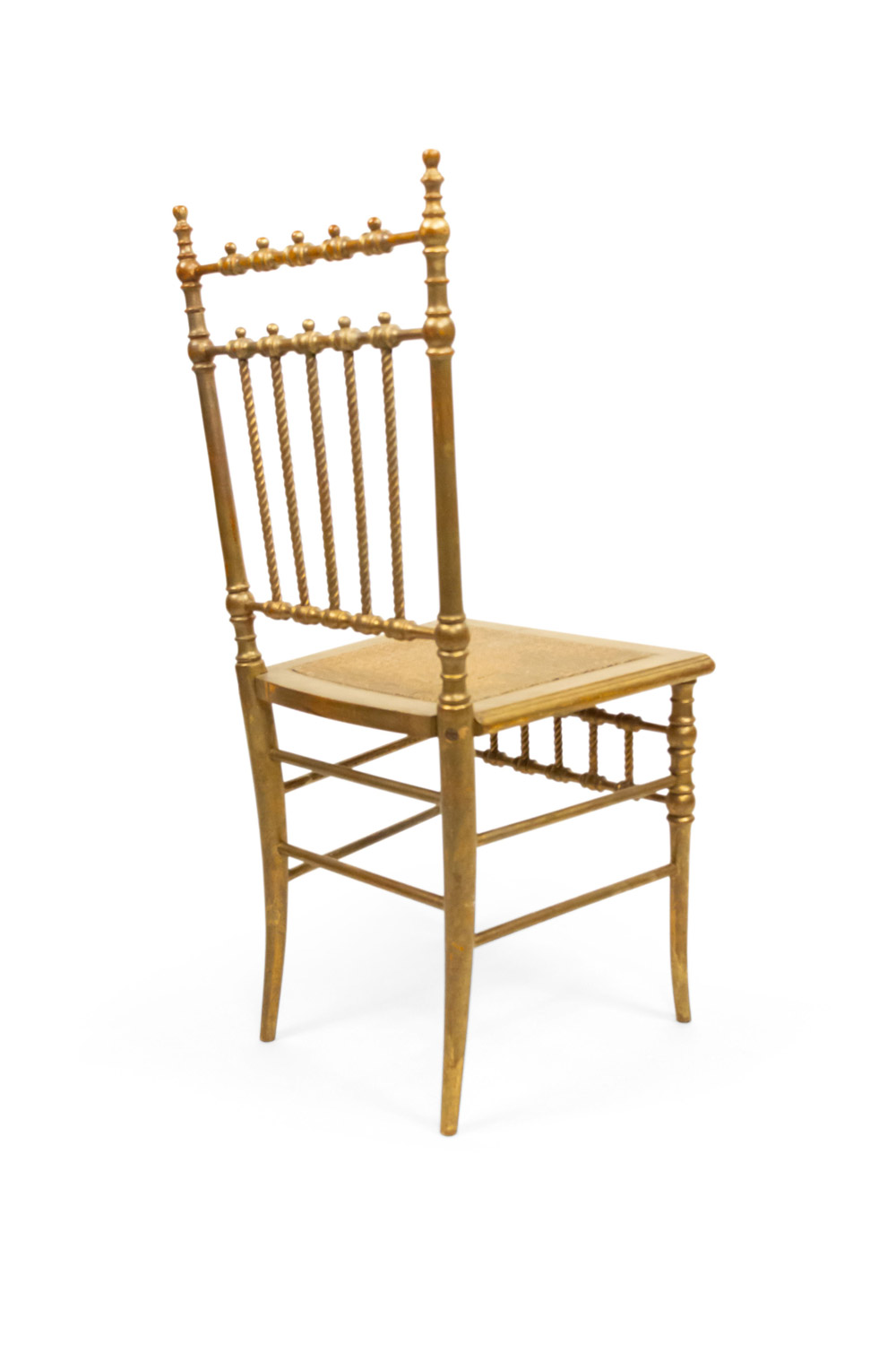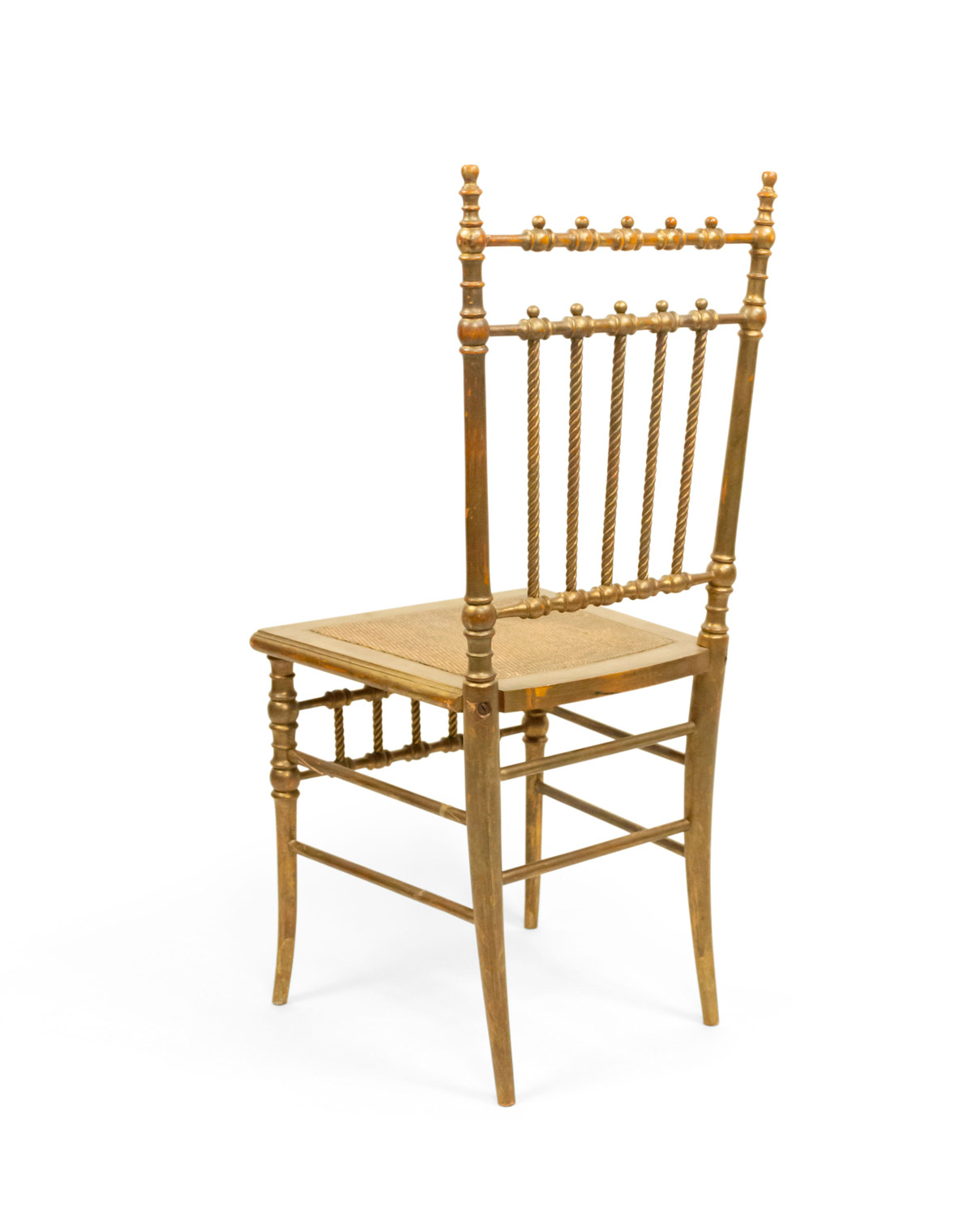 6 French Victorian style gilt ballroom side chairs with spindle and ball back and rope design slats with woven seat (PRICED EACH) (20th Cent.).
