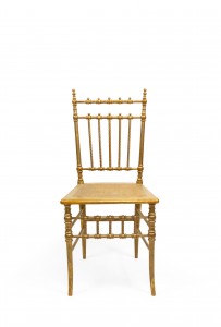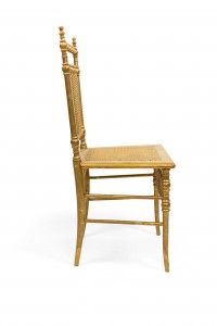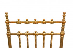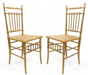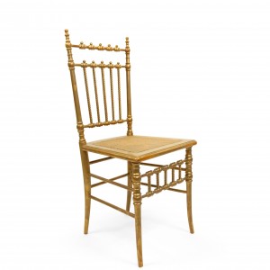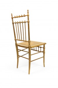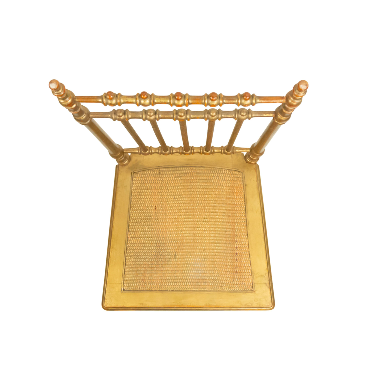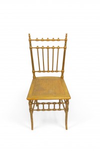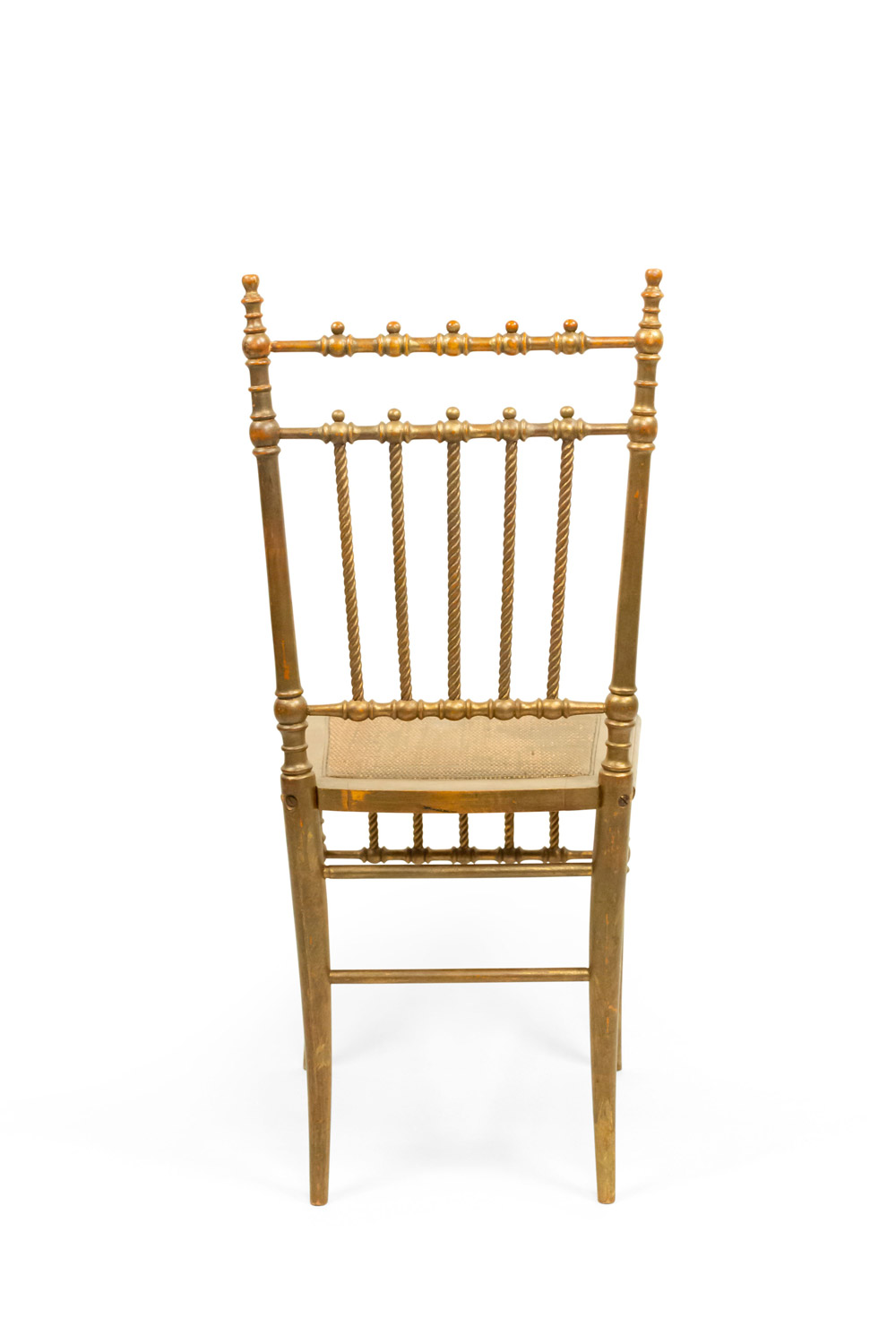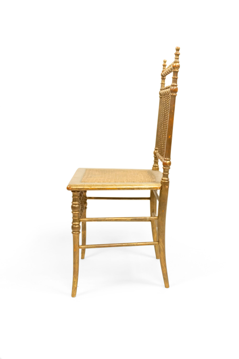 6 French Victorian style gilt ballroom side chairs with spindle and ball back and rope design slats with woven seat (PRICED EACH) (20th Cent.).
