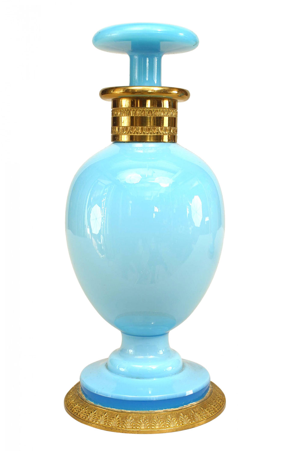 2 French Victorian style (20th Cent) blue opaline perfume bottles with bronze dore trim (2-PRICED EACH).