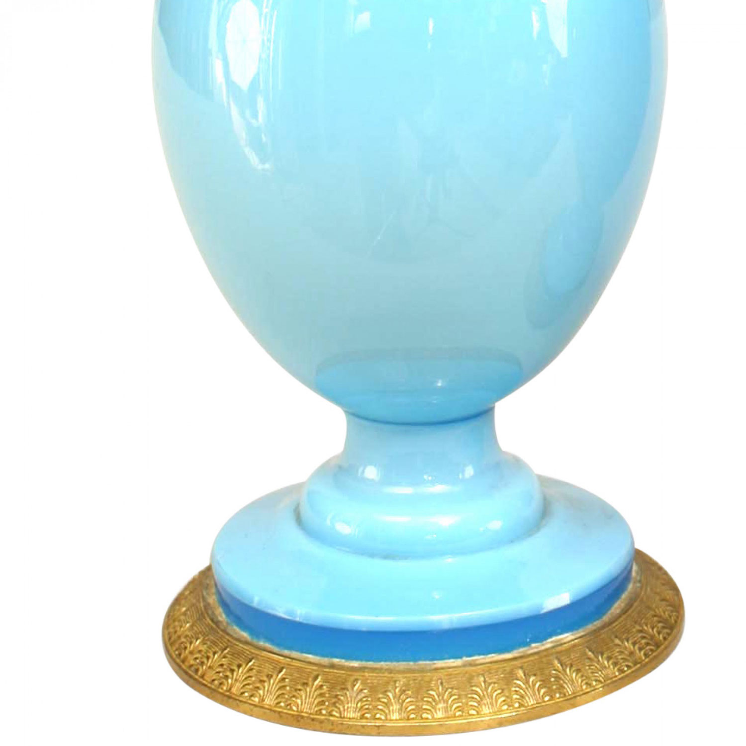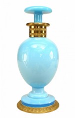2 French Victorian style (20th Cent) blue opaline perfume bottles with bronze dore trim (2-PRICED EACH)