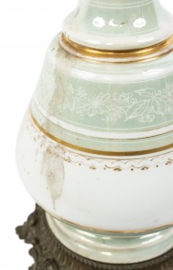 Style: French Materials & Techniques: Bronze, etched, glass, porcelain Category: Lighting Condition: Not wired for electric