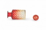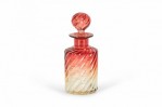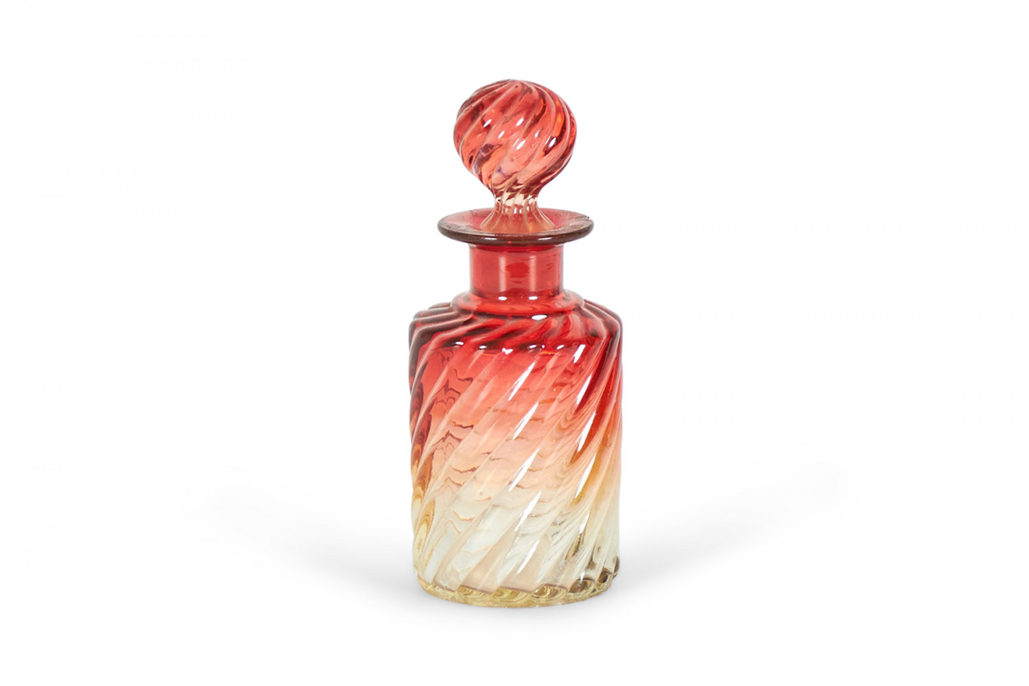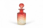 2 French Victorian cranberry colored Baccarat crystal perfume bottles with swirl design and stopper (2-PRICED EACH) (1 has a small chip on edge of top rim).