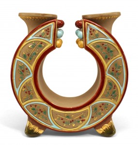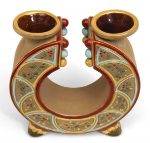 French Victorian Faience Majolica Double Vase
