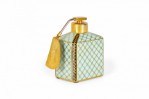 French Victorian blue and gilt trimmed porcelain perfume atomizer with floral design.
