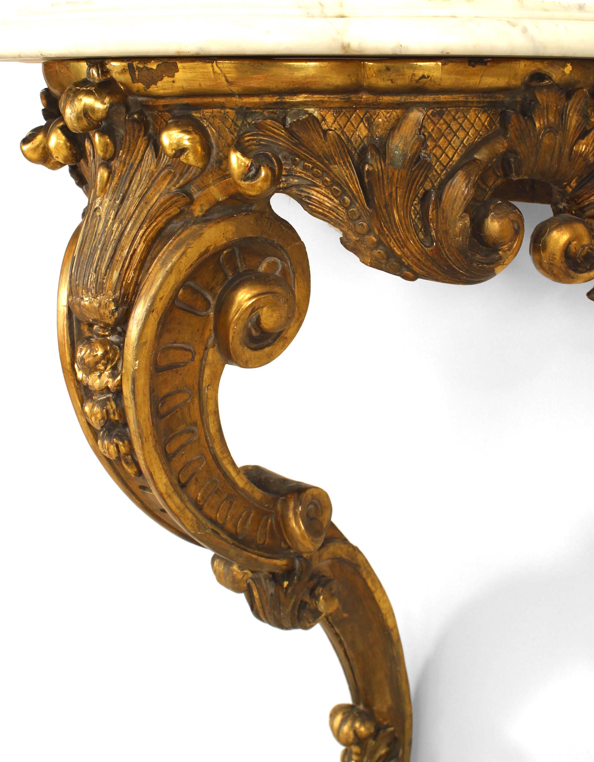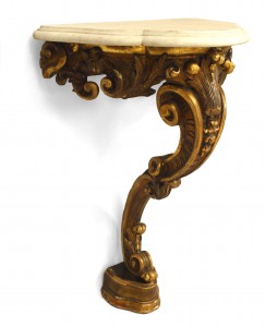 Style: French Materials & Techniques: Carved, gilt / giltwood, marble Category: Tables Condition: Needs to be secured to a wall. Fragile base. Antique condition.