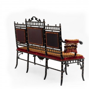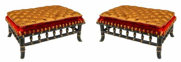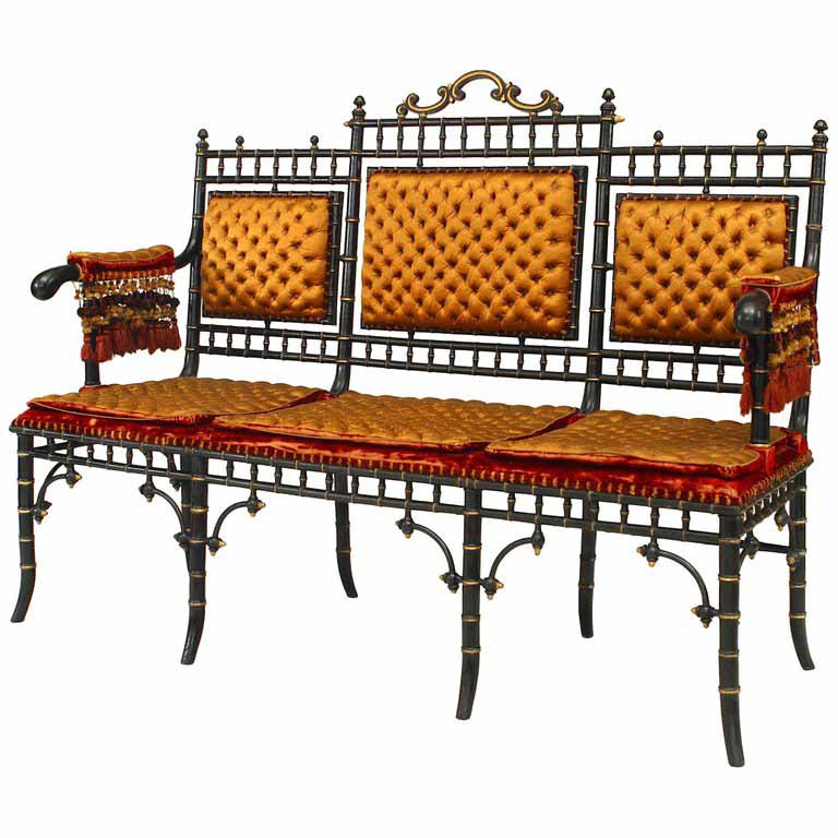 Style: Bamboo Materials & Techniques: Gold, bamboo, ebonized, fringe, tufted Category: Seating, Bamboo