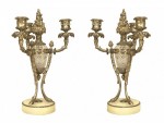 Pair of French Victorian Style Bronze and Glass Candelabras