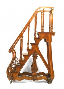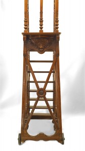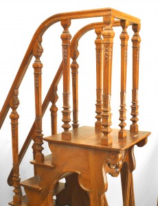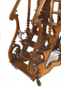 PAIR of French (19th Century) walnut library ladders with side railings and steps leading to a top platform (on casters) (attributed to Napoleon III's personal library) (Related items: 032213, 042367)..