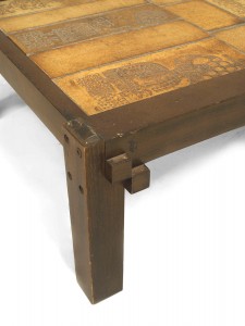 Style: Mid-Century Materials & Techniques: Ceramic, wood Category: Tables Good; Wear consistent with age and use