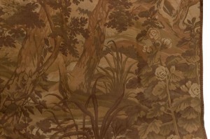 French Woven Sepia Toned Tapestry of a Forest Scene