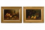 PAIR of gilt framed still life oil paintings of fruit with jug.