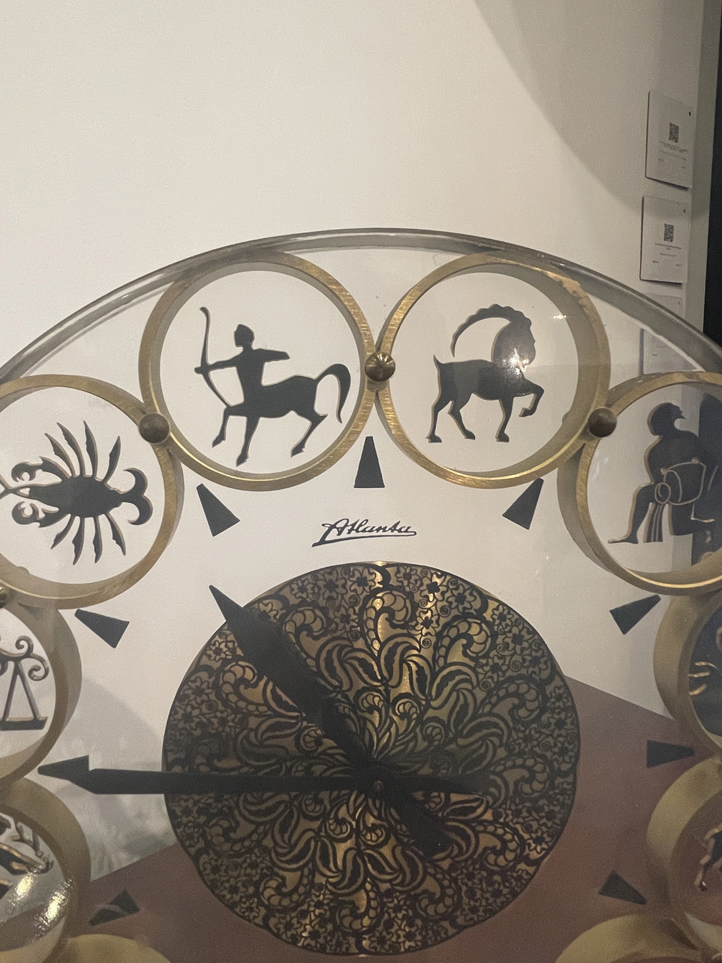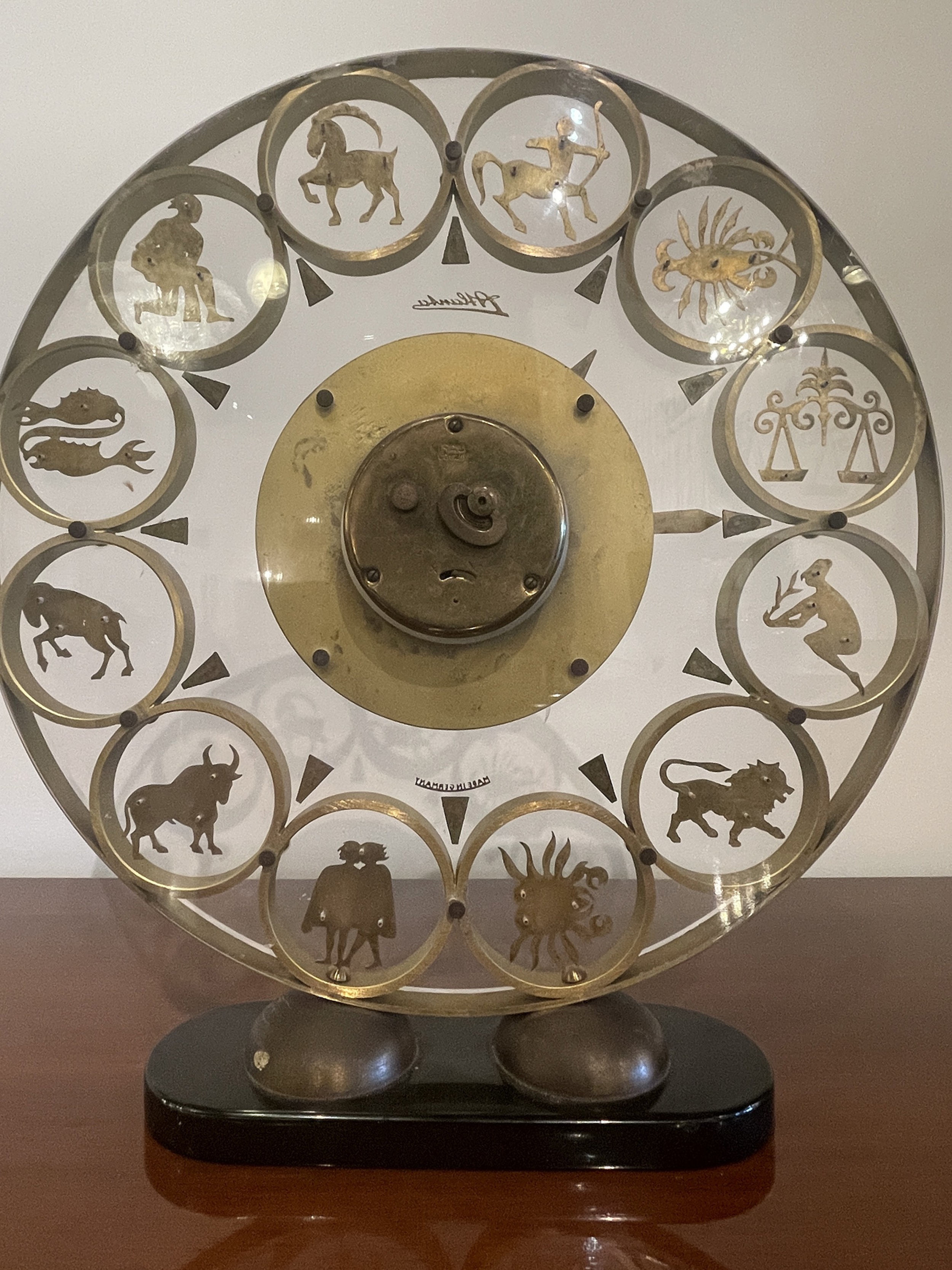 German Brass and Lucite Zodiac Clock by Atlanta.