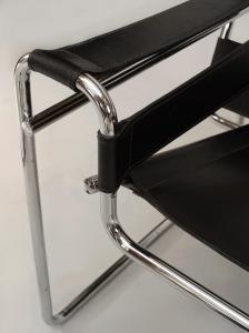 2 German 1920s-style (modern) chrome plated frame and black leather "Wassily" arm chairs (PRICED EACH)