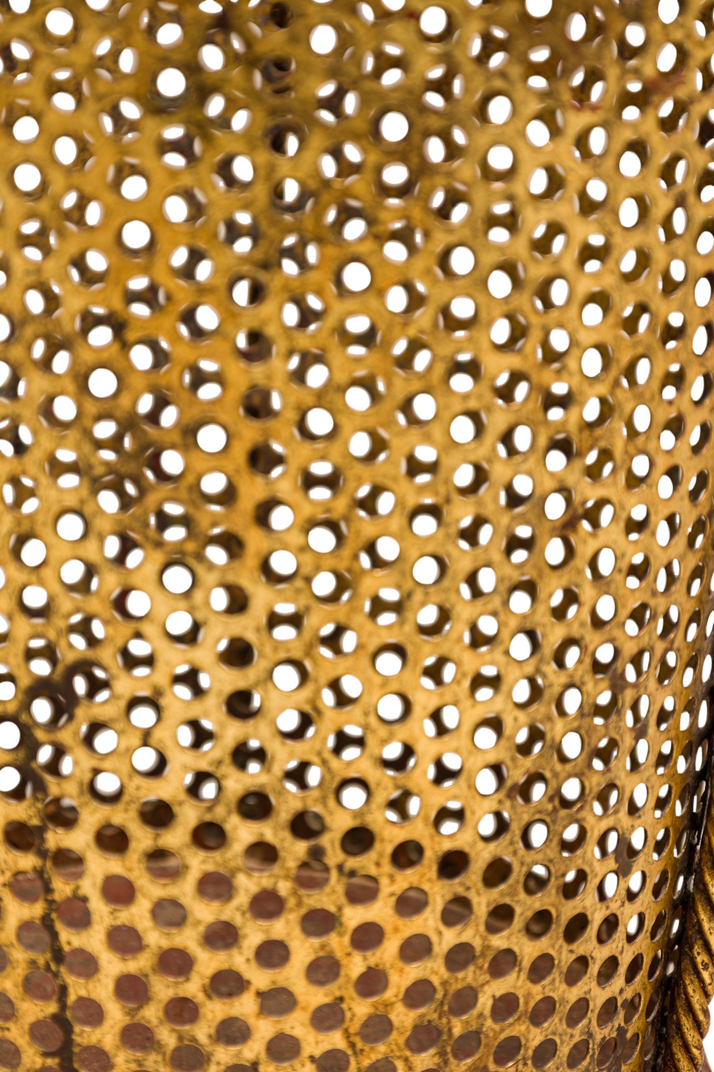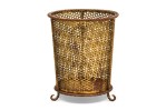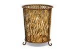 Mid-Century gilt metal rope trim round waste paper basket with perforated frame