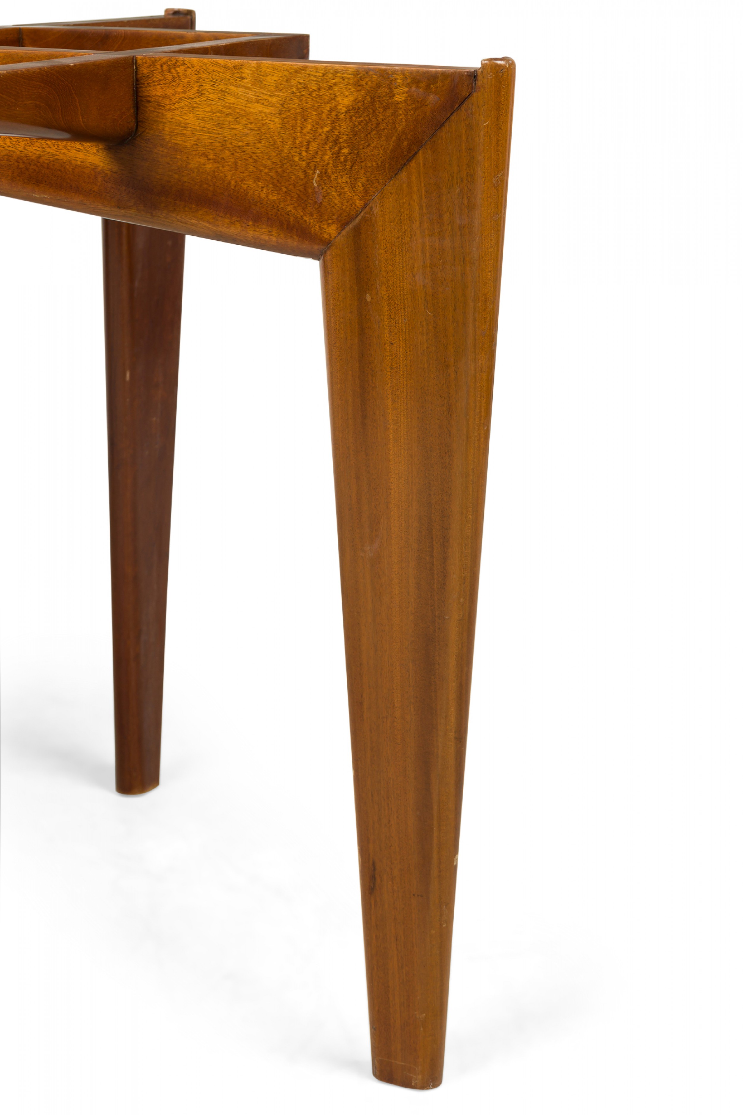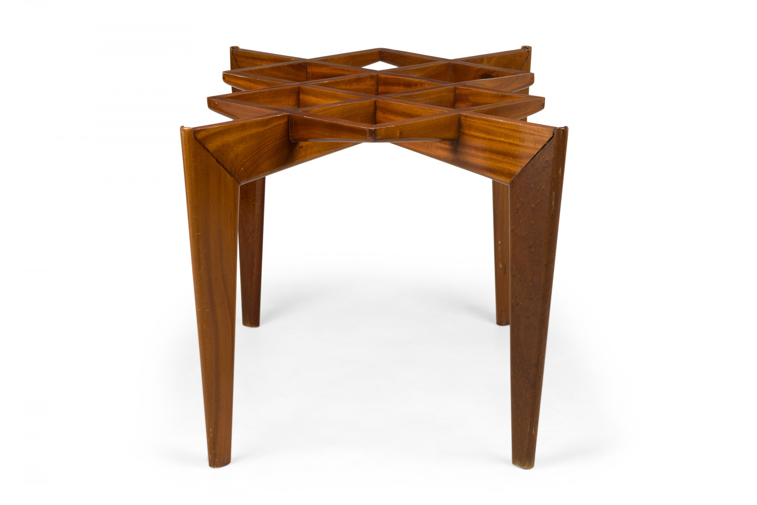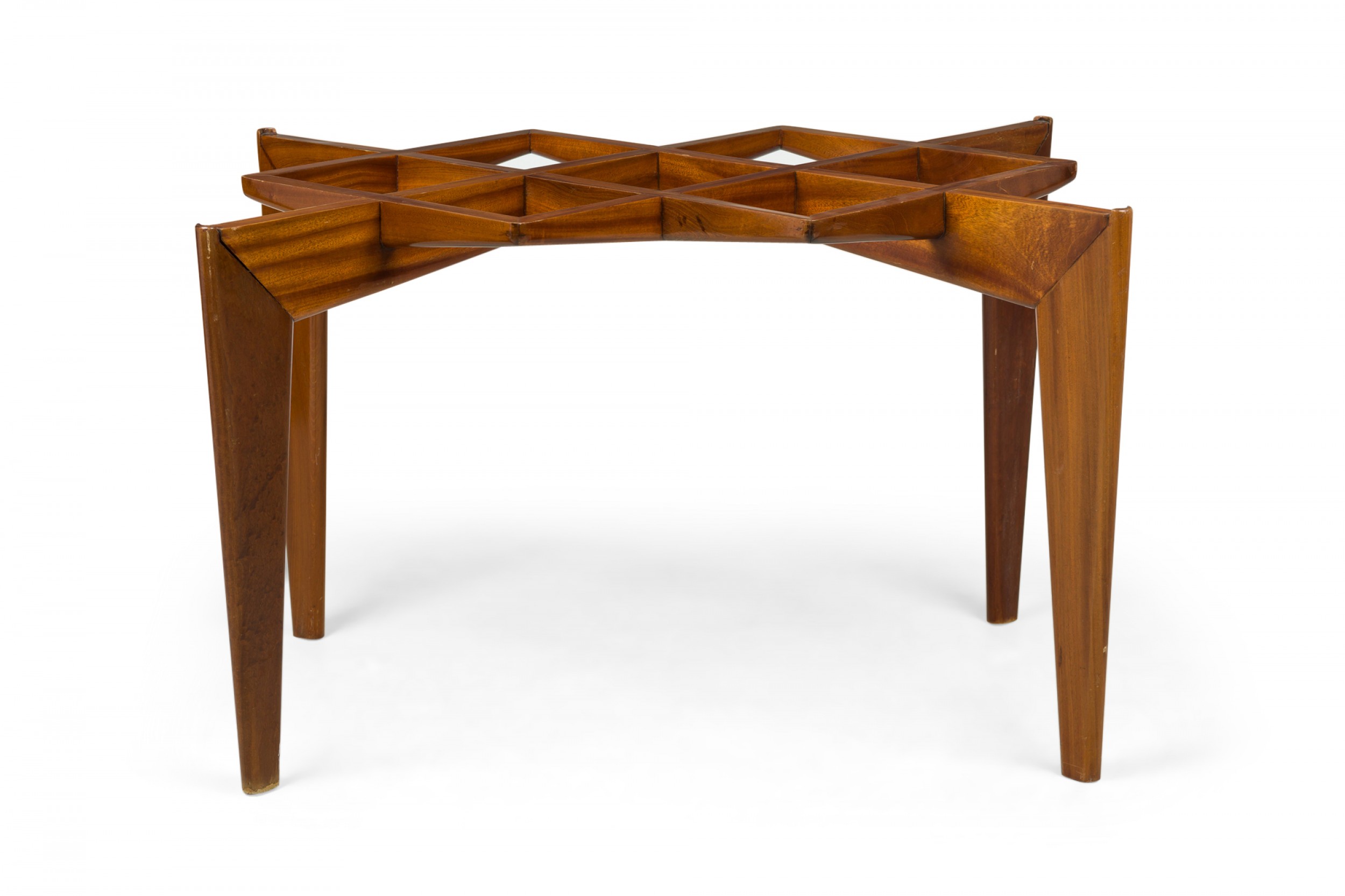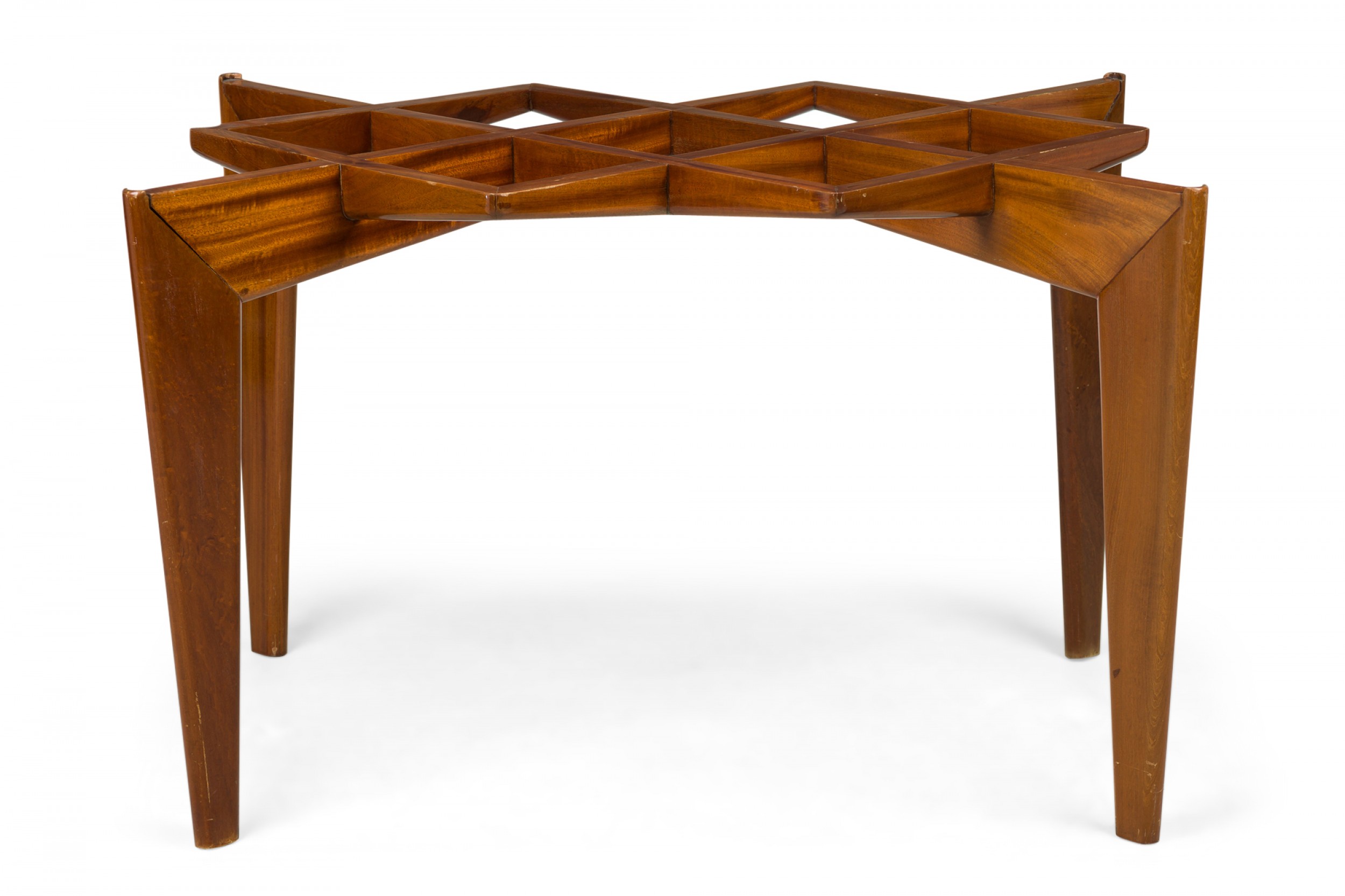 Mid-Century Italian Modern mahogany dining / conference table frame styled in a geometric angular design with an openwork diamond shaped lattice top, supported on 4 tapered, sharply cornered legs. (GIO PONTI).