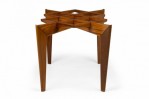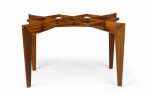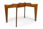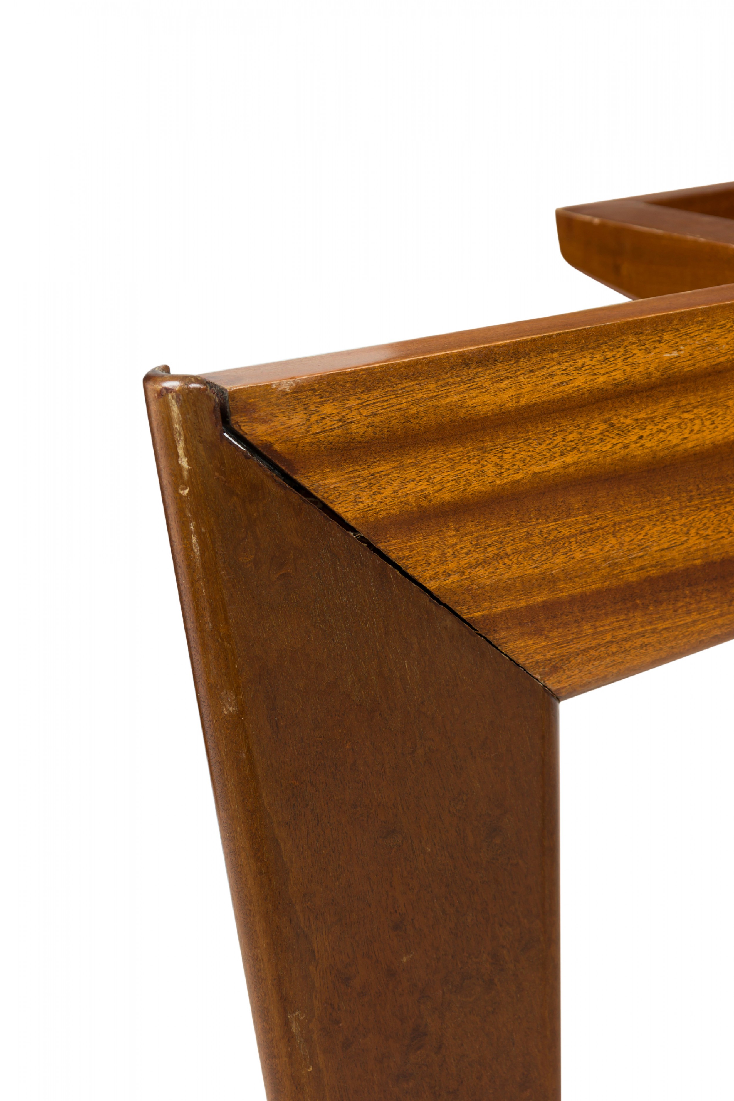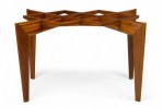 Mid-Century Italian Modern mahogany dining / conference table frame styled in a geometric angular design with an openwork diamond shaped lattice top, supported on 4 tapered, sharply cornered legs. (GIO PONTI)