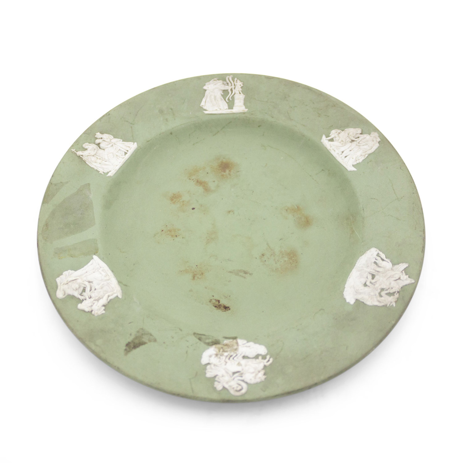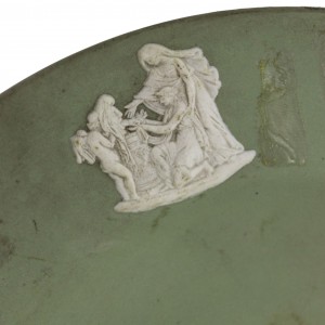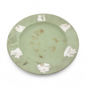 English Victorian-style (20th Century) green Wedgwood porcelain round ashtray with 6 medallions on edge.