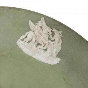 English Victorian-style (20th Century) green Wedgwood porcelain round ashtray with 6 medallions on edge