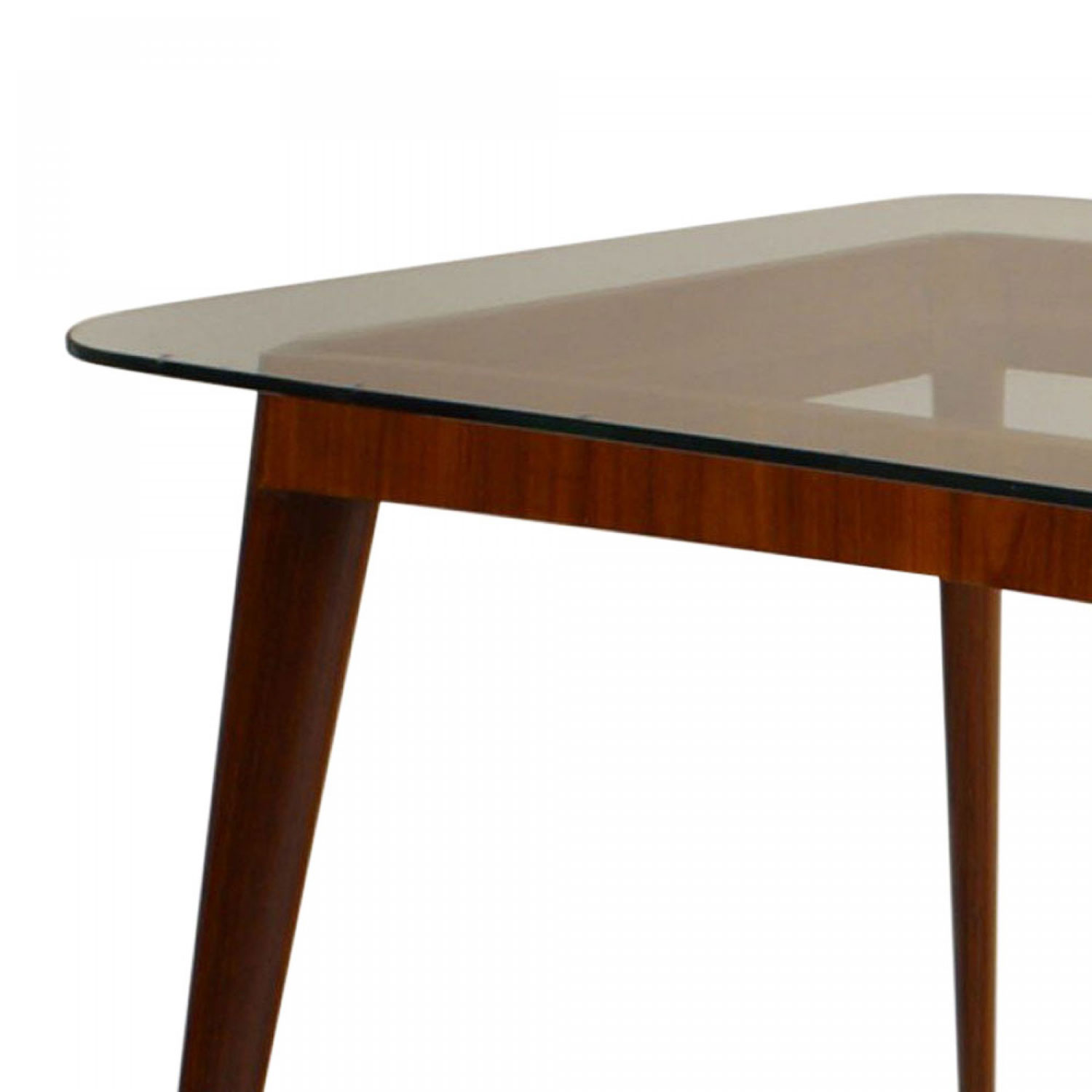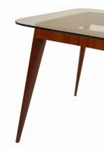 Italian Mid-Century (1950s) rosewood dining table with 4 tapers legs supporting a large glass top