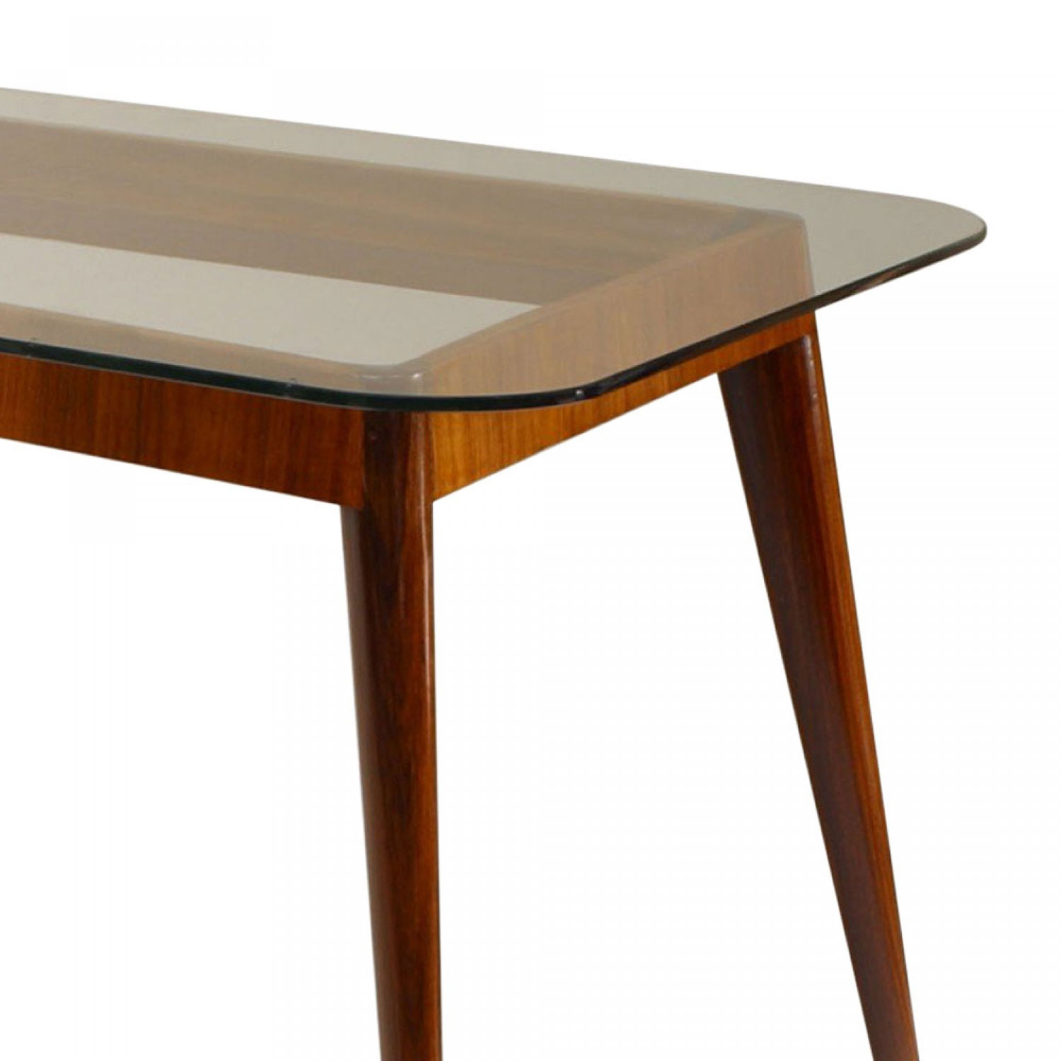 Style: Mid-Century Materials & Techniques: Glass, rosewood, wood Category: Tables, Office/Library, Dining Room
