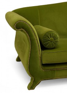 Italian 1940s style (modern) large settee / sofa with camel back design and flaired arms upholstered in light green velvet with 2 large seat cushions and 2 bolsters