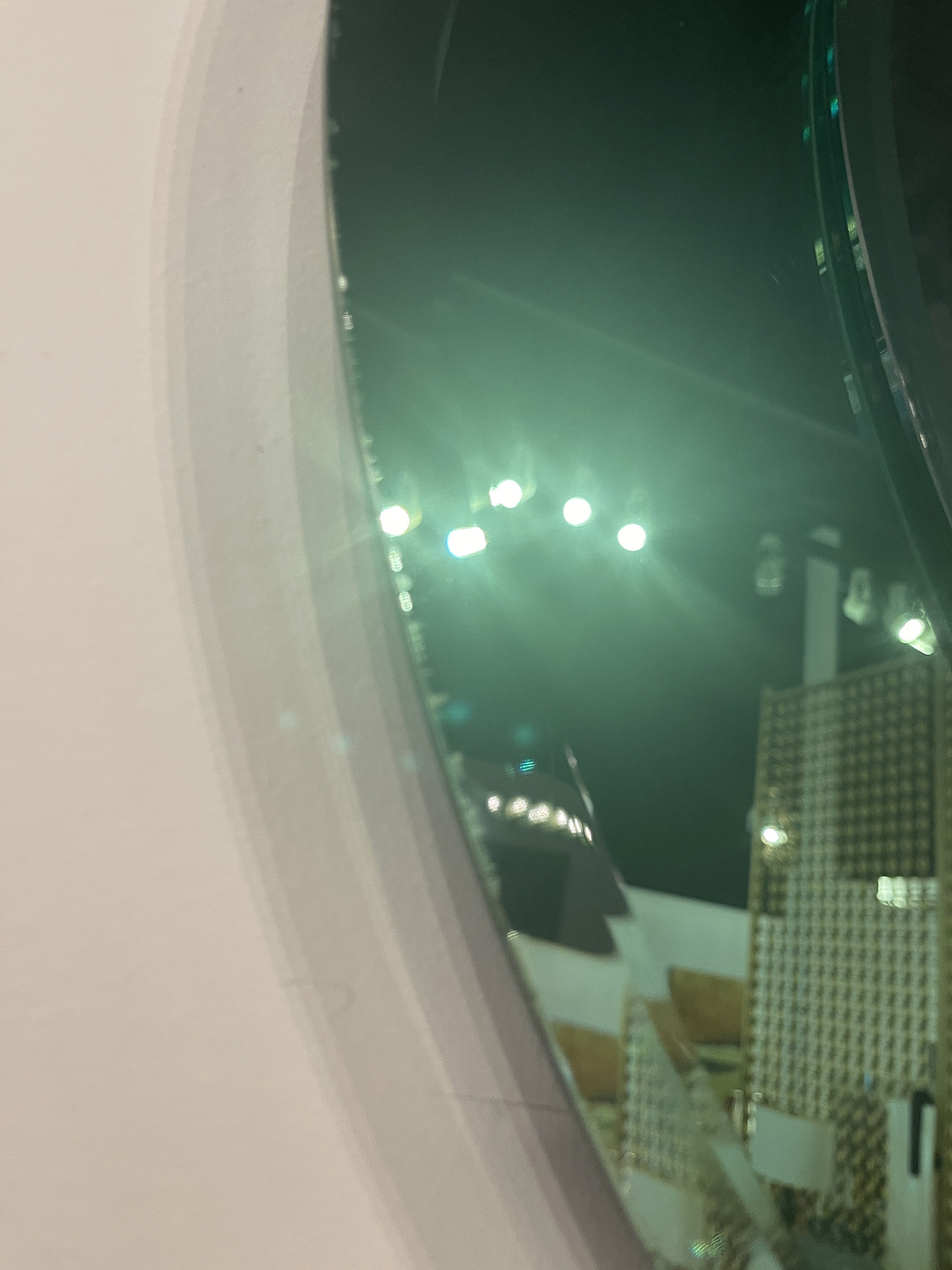 Italian Mid-Century (1940s) round wall mirror with tinted light green glass. (By FONTANA ARTE).